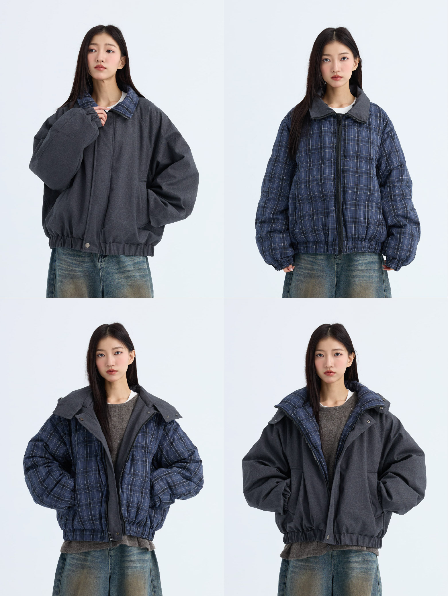 雙面穿格紋 可拆式 鴨絨外套 [PJ023]