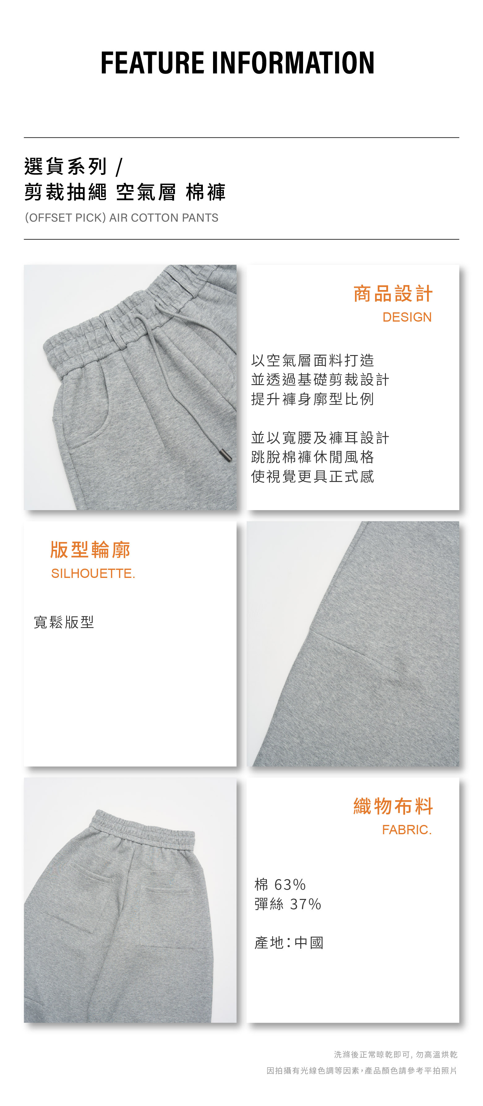 剪裁抽繩 空氣層 棉褲 [PB074]