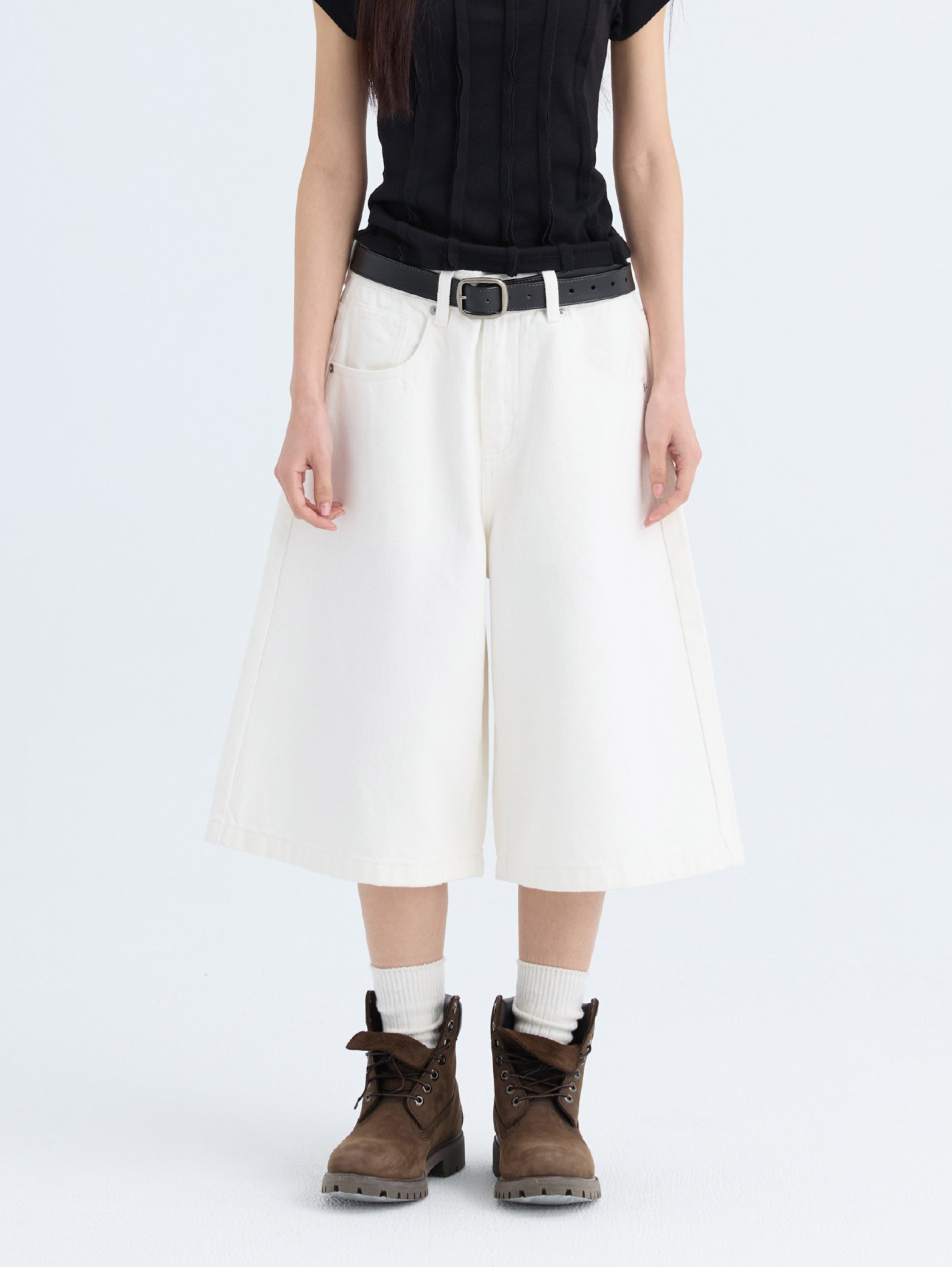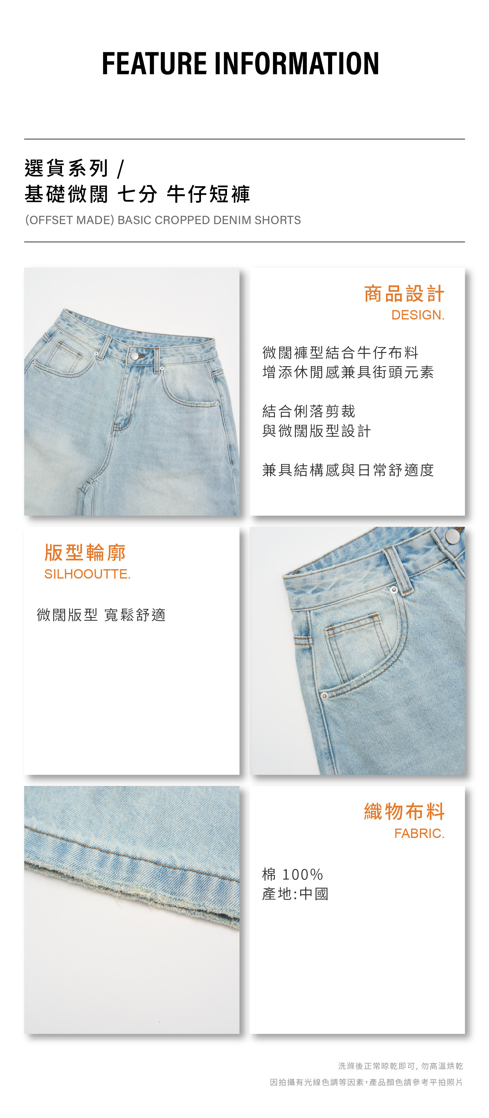 基礎微闊 七分 牛仔短褲 [PB083]