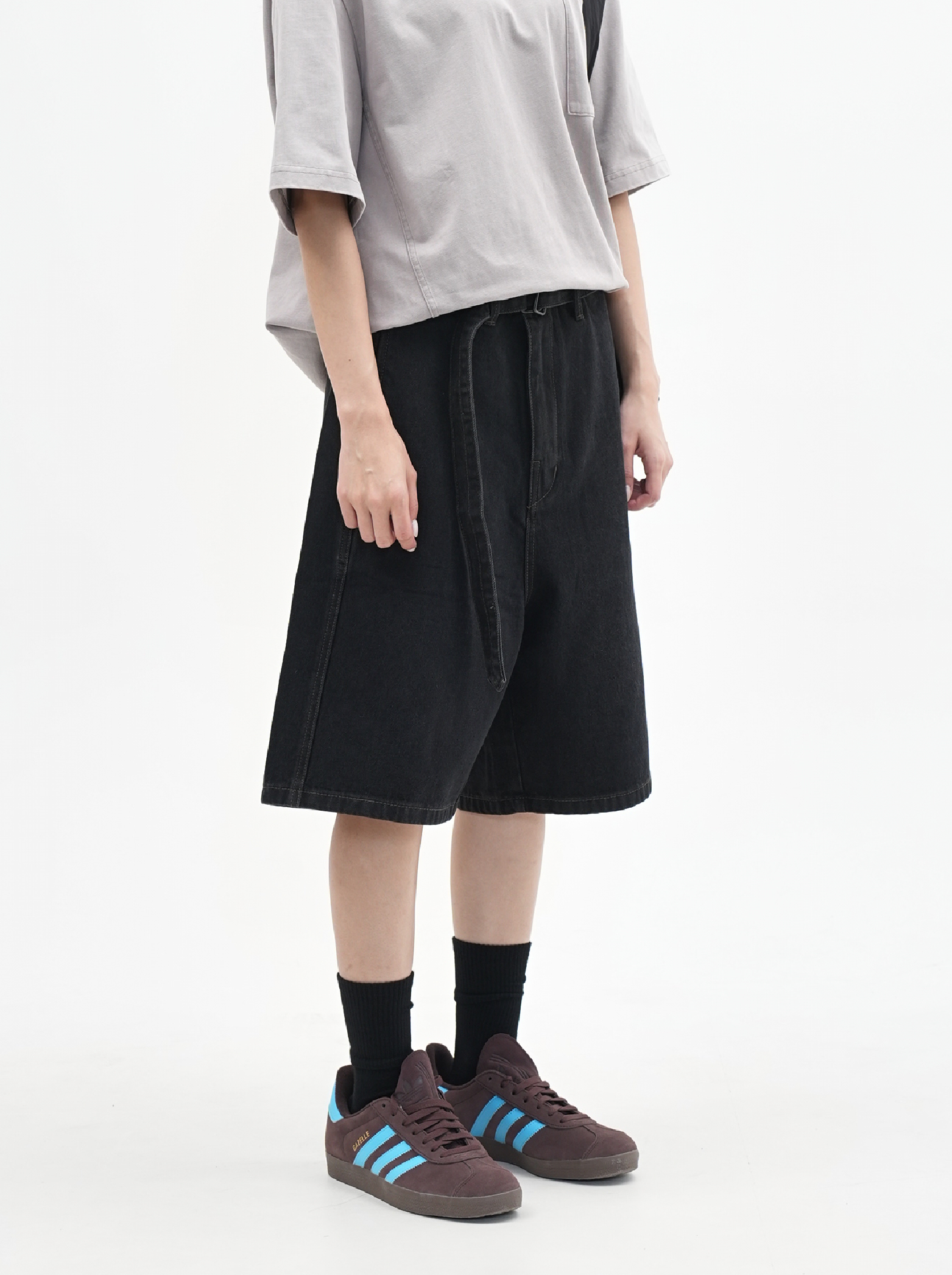 腰帶七分 牛仔短褲 [PB011]