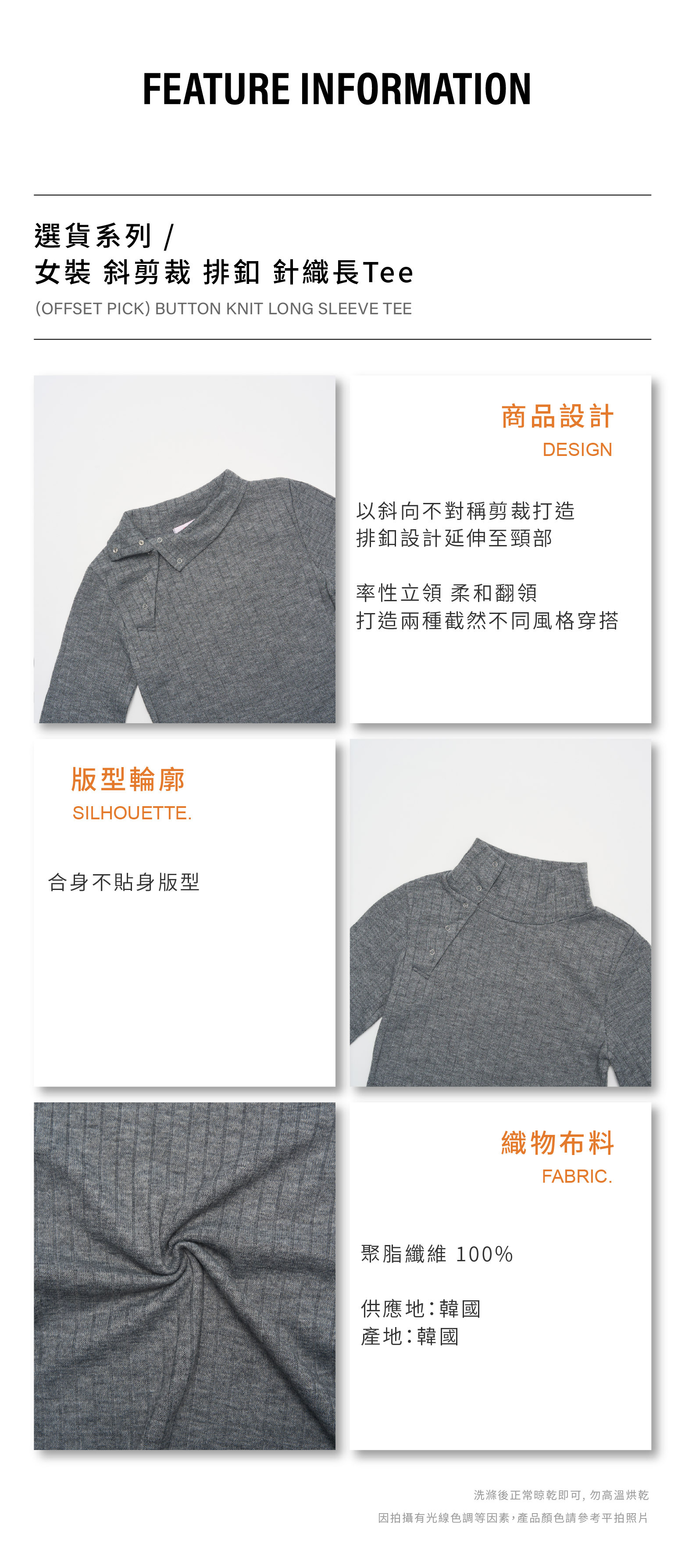 女裝 斜剪裁 排釦 針織長Tee [PT054]