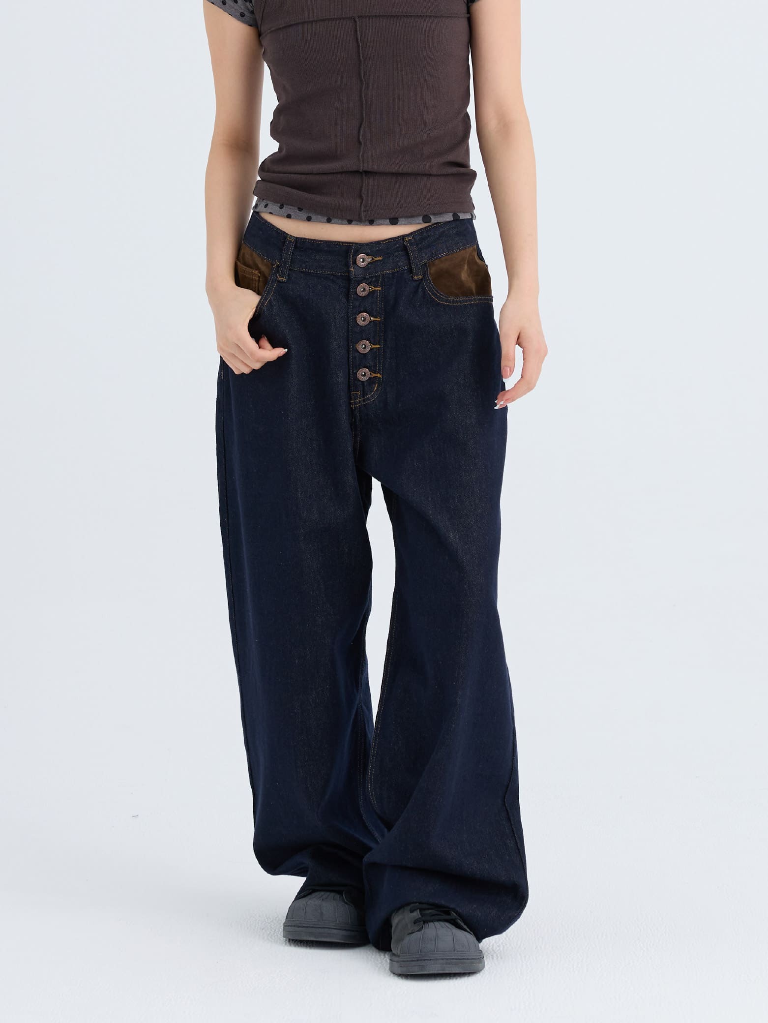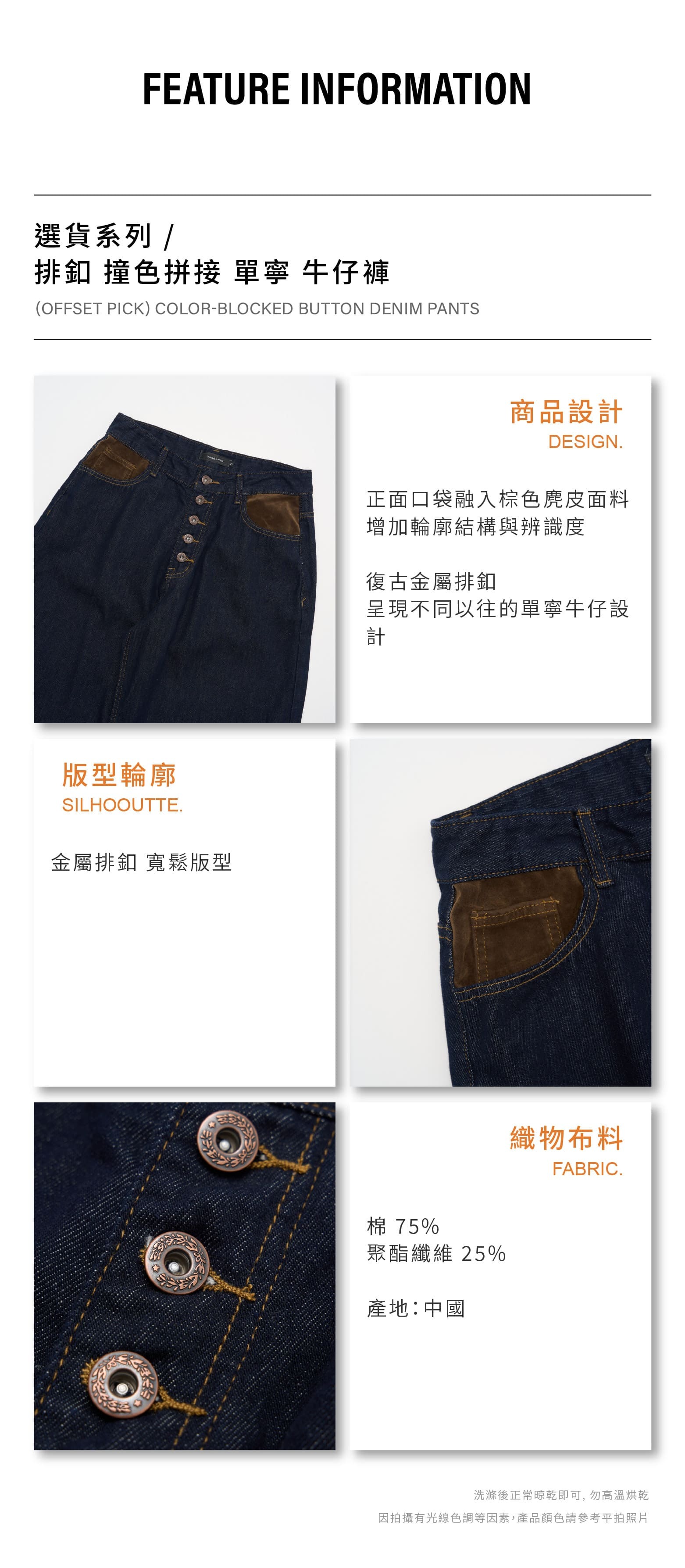 排釦 撞色拼接 單寧 牛仔褲 [PB096]