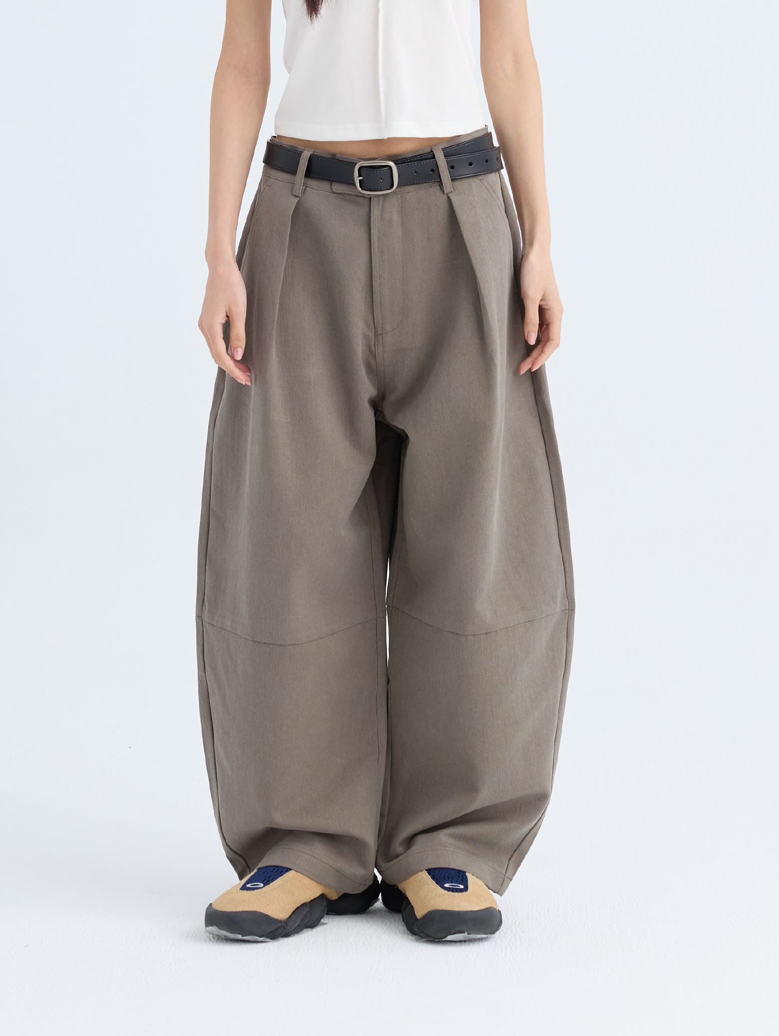 輕彎刀 打摺 闊腿寬褲 [PB082]