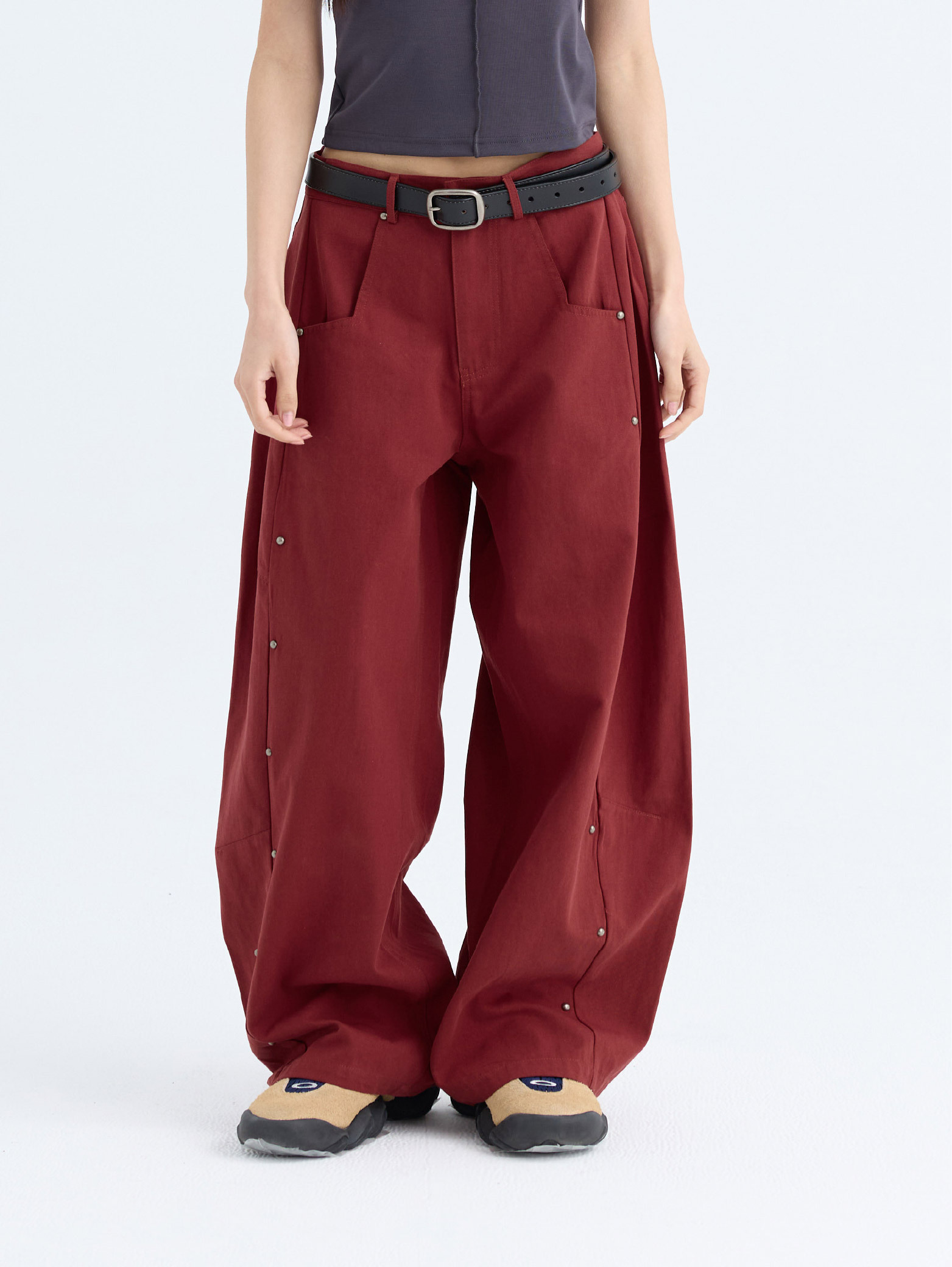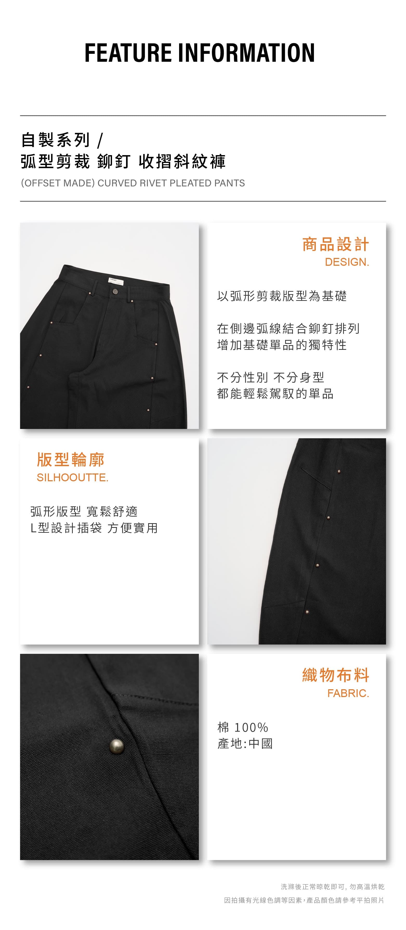 OFFSET MADE 弧型剪裁 鉚釘 收摺斜紋褲 [MB064]