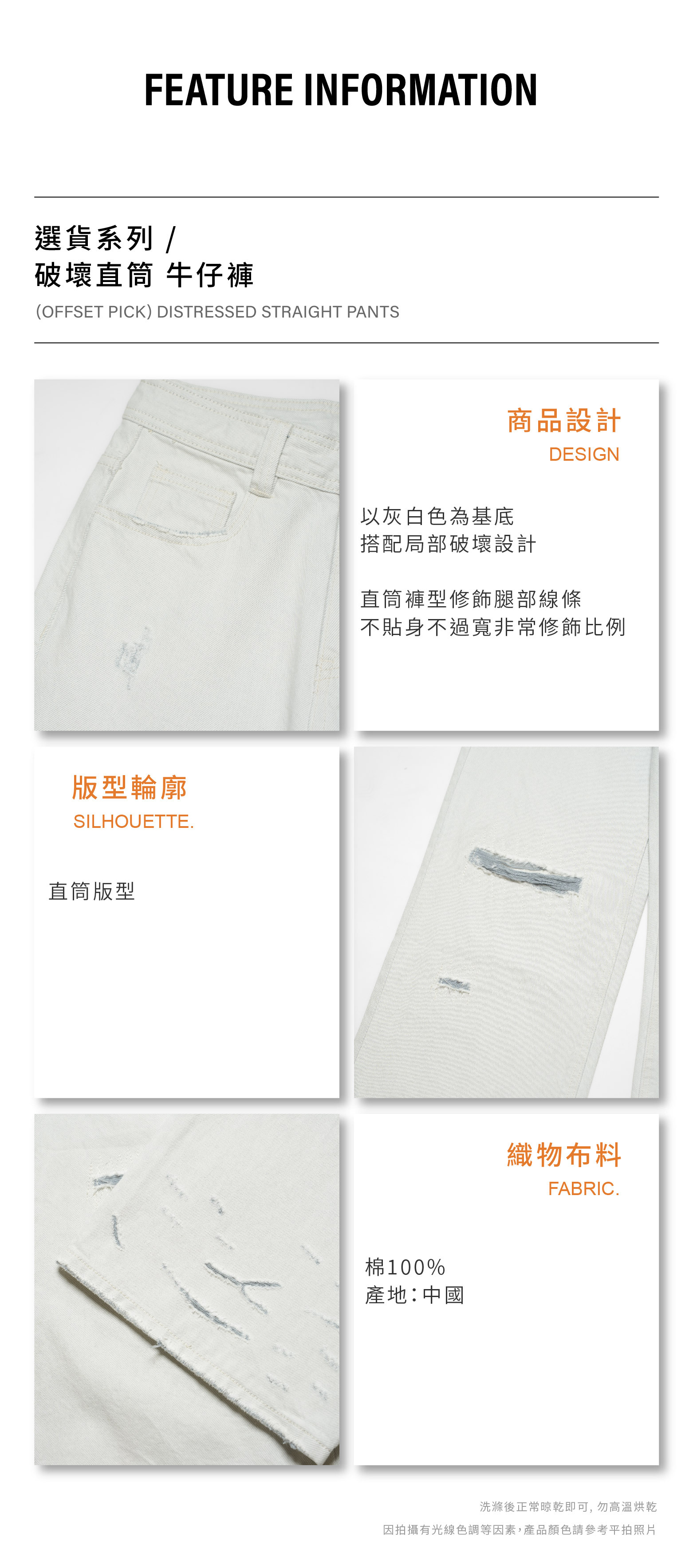破壞直筒 牛仔褲 [PB039]