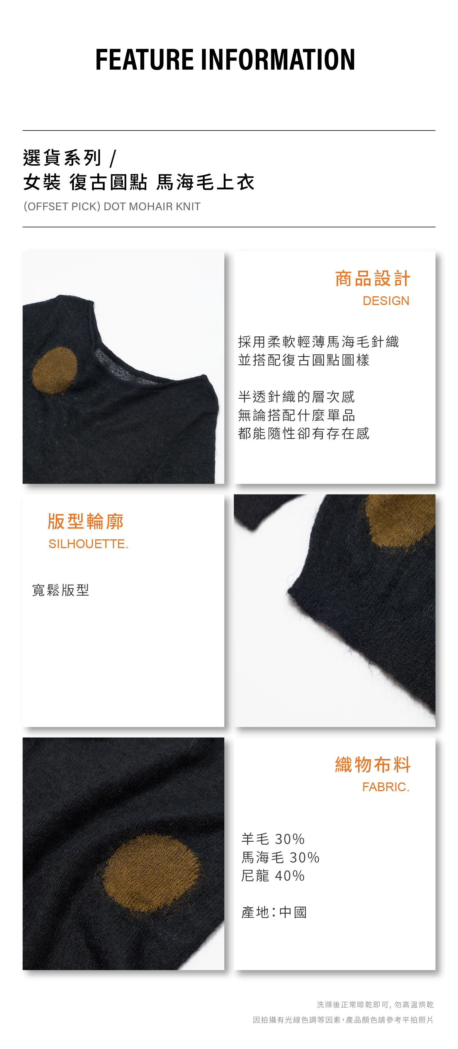 女裝 復古圓點 馬海毛上衣 [PT036]