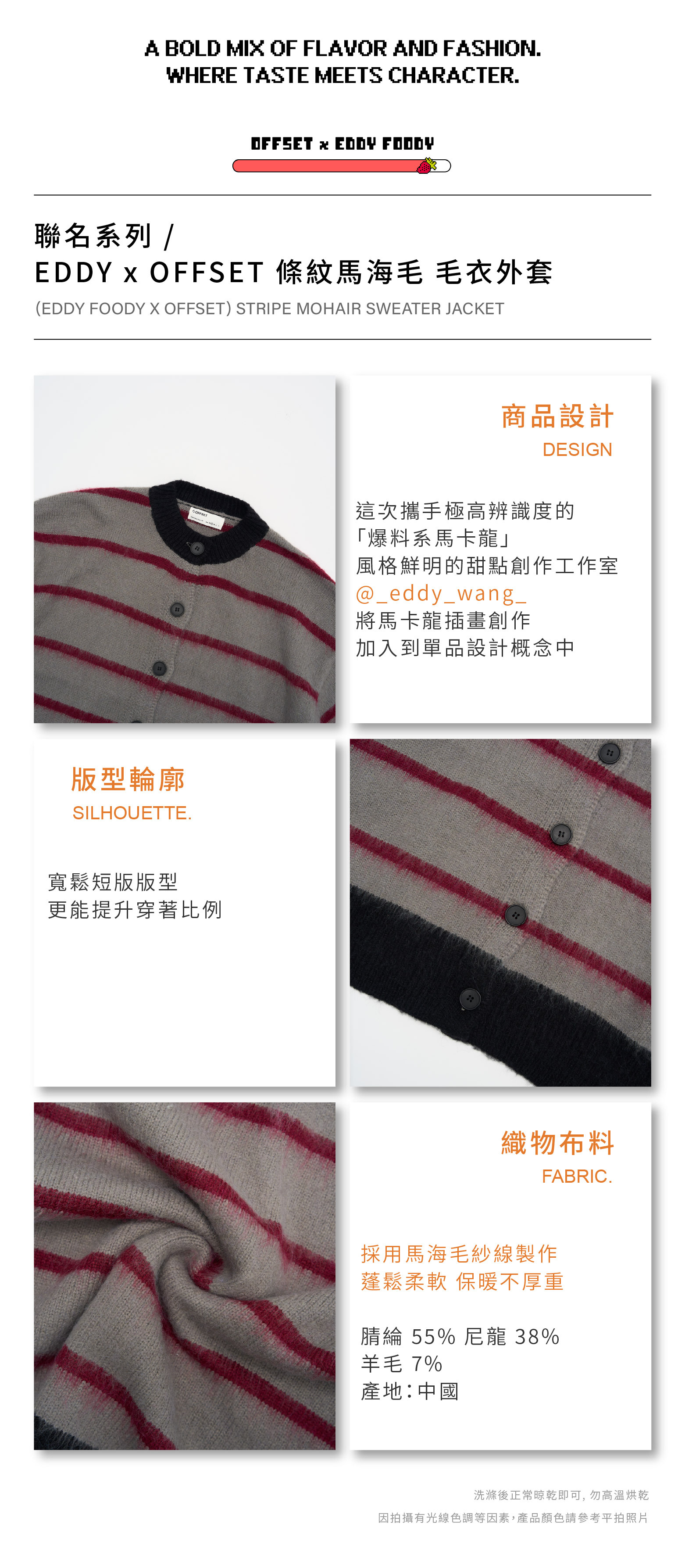 EDDY x OFFSET 條紋馬海毛 毛衣外套+草莓優格馬卡龍(六入)