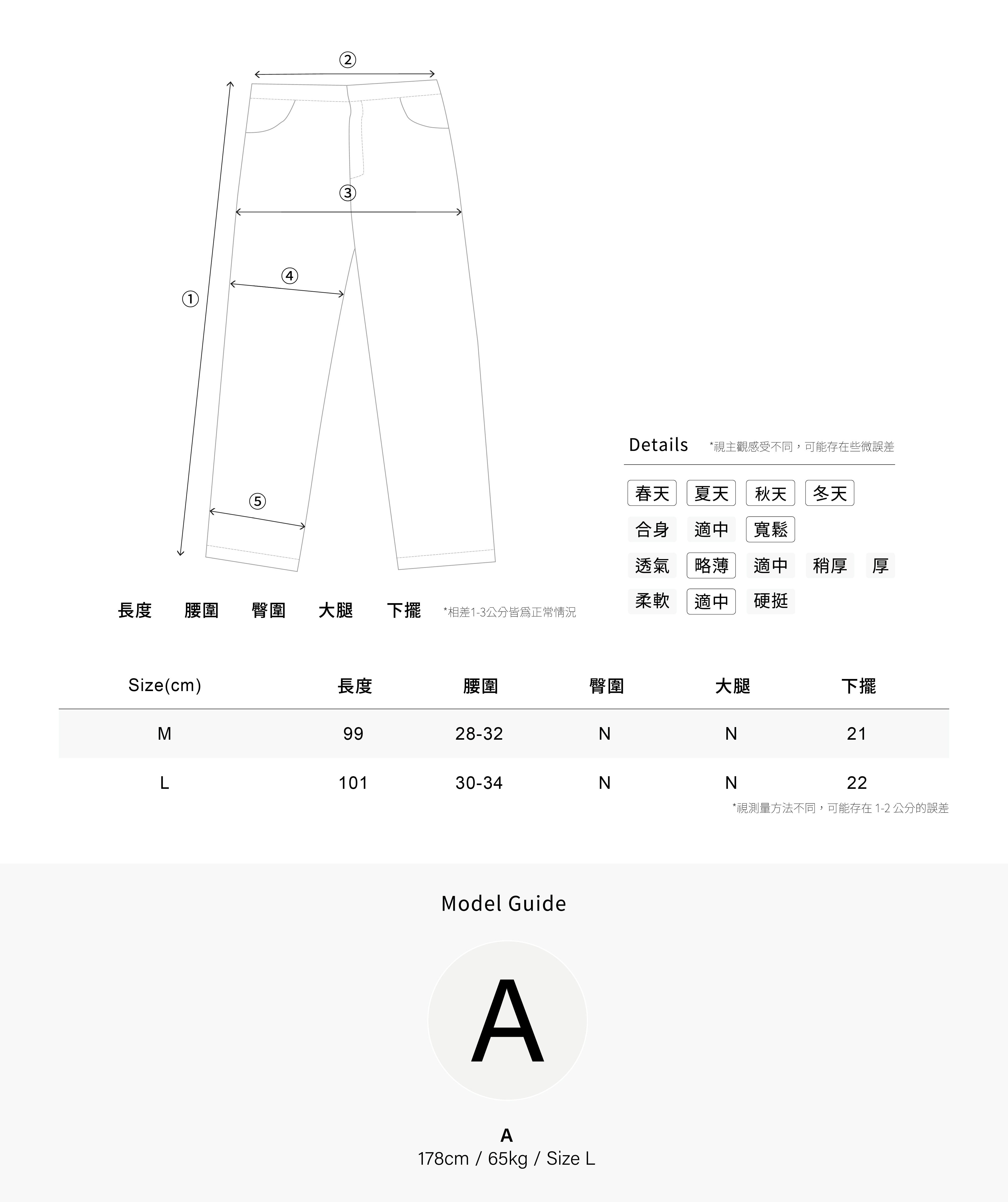 ✓褲裝內部 T 字邊界以布邊滾合處理,建立出更佳細膩的穿著體驗