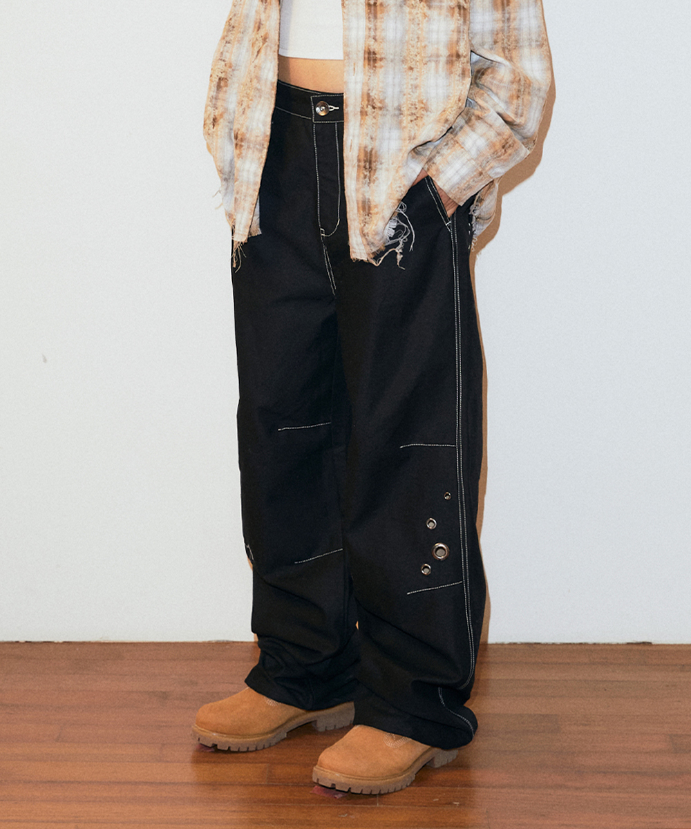 MAHAGRID / EYELET WIDE PANTS 金屬環牛仔寬褲