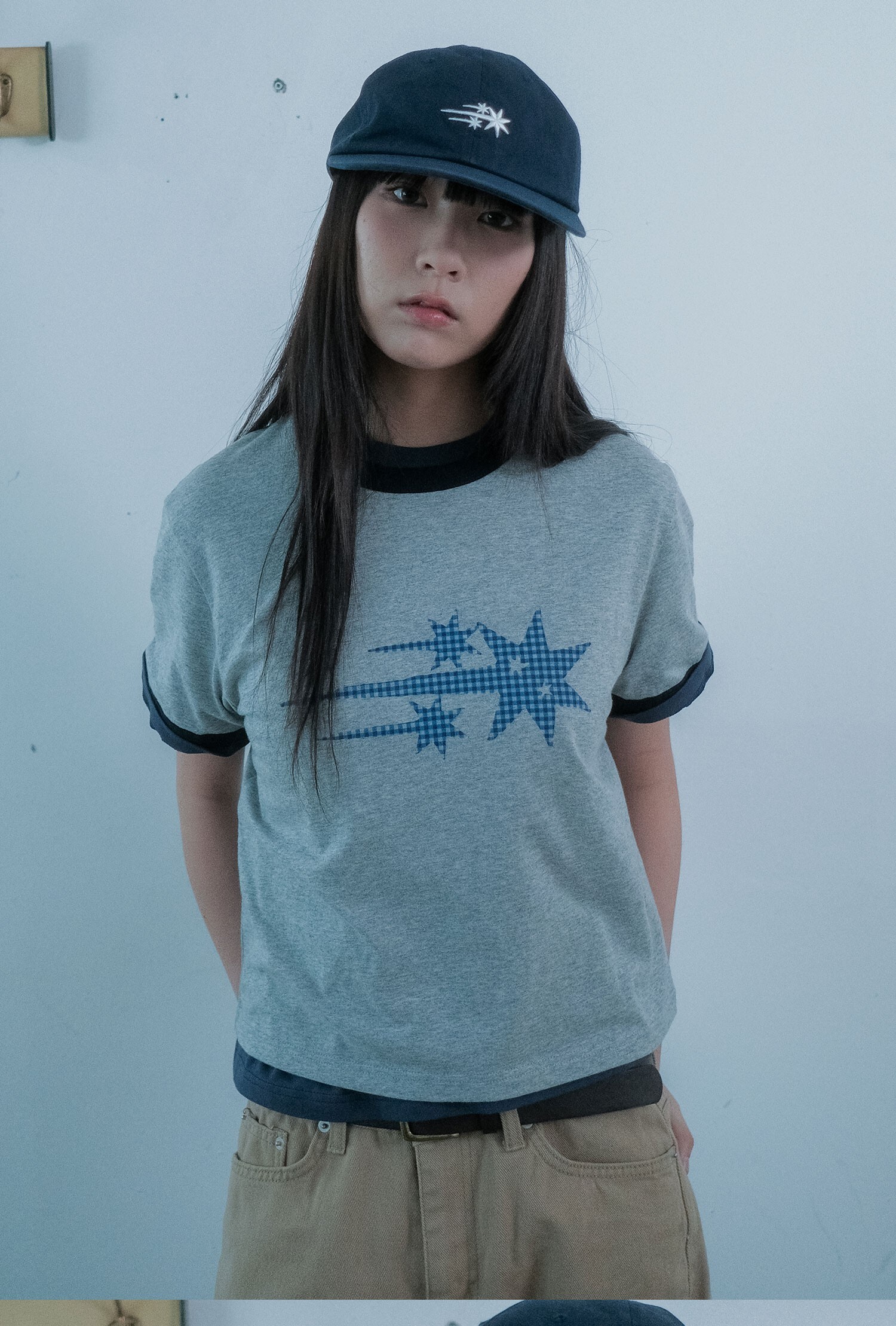 NICEGHOSTCLUB / CHECK 3STAR BASIC RINGER TEE 格紋星星滾邊短Tee