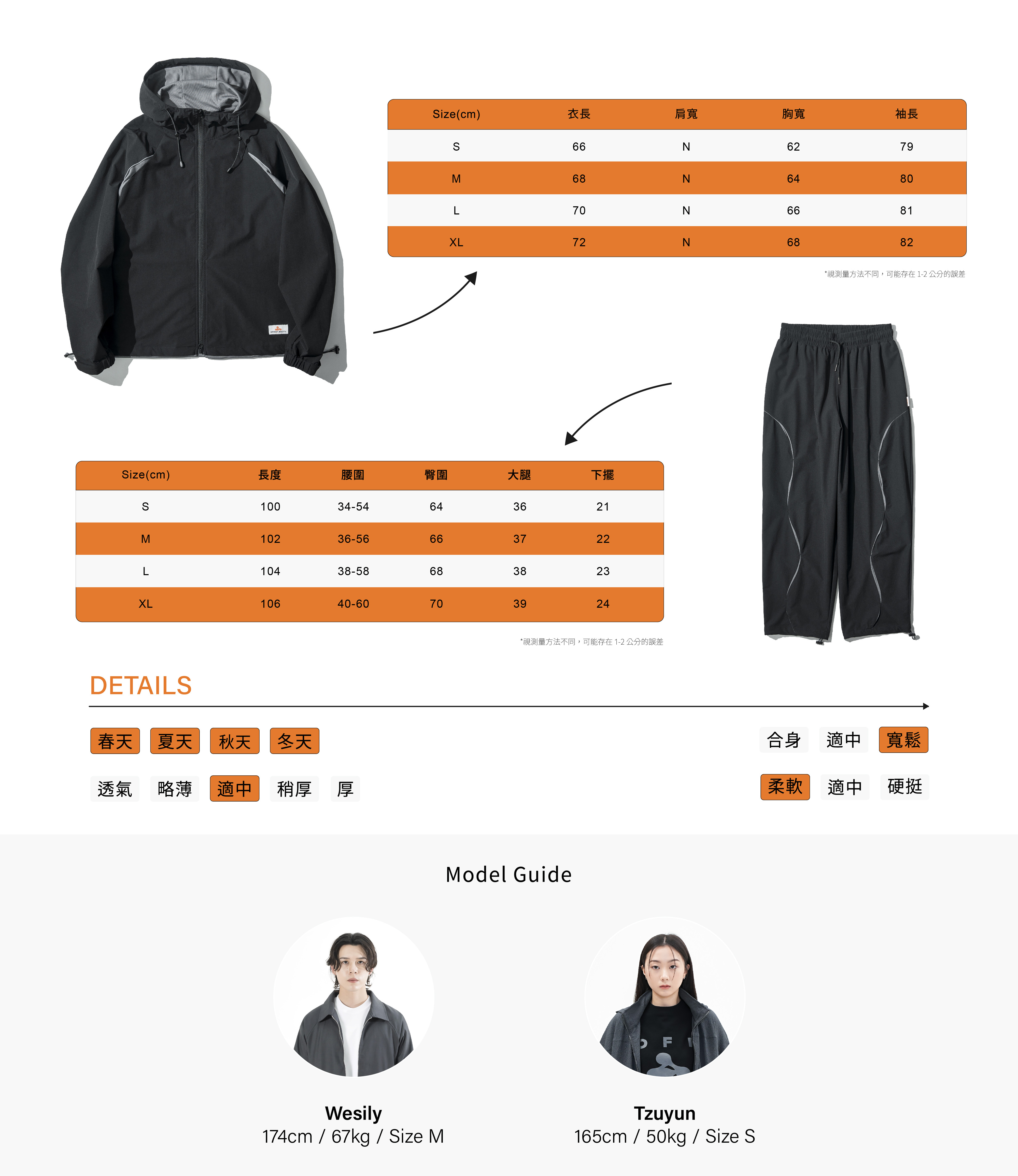 - 三片式連帽設計,抽繩可自行調整鬆緊