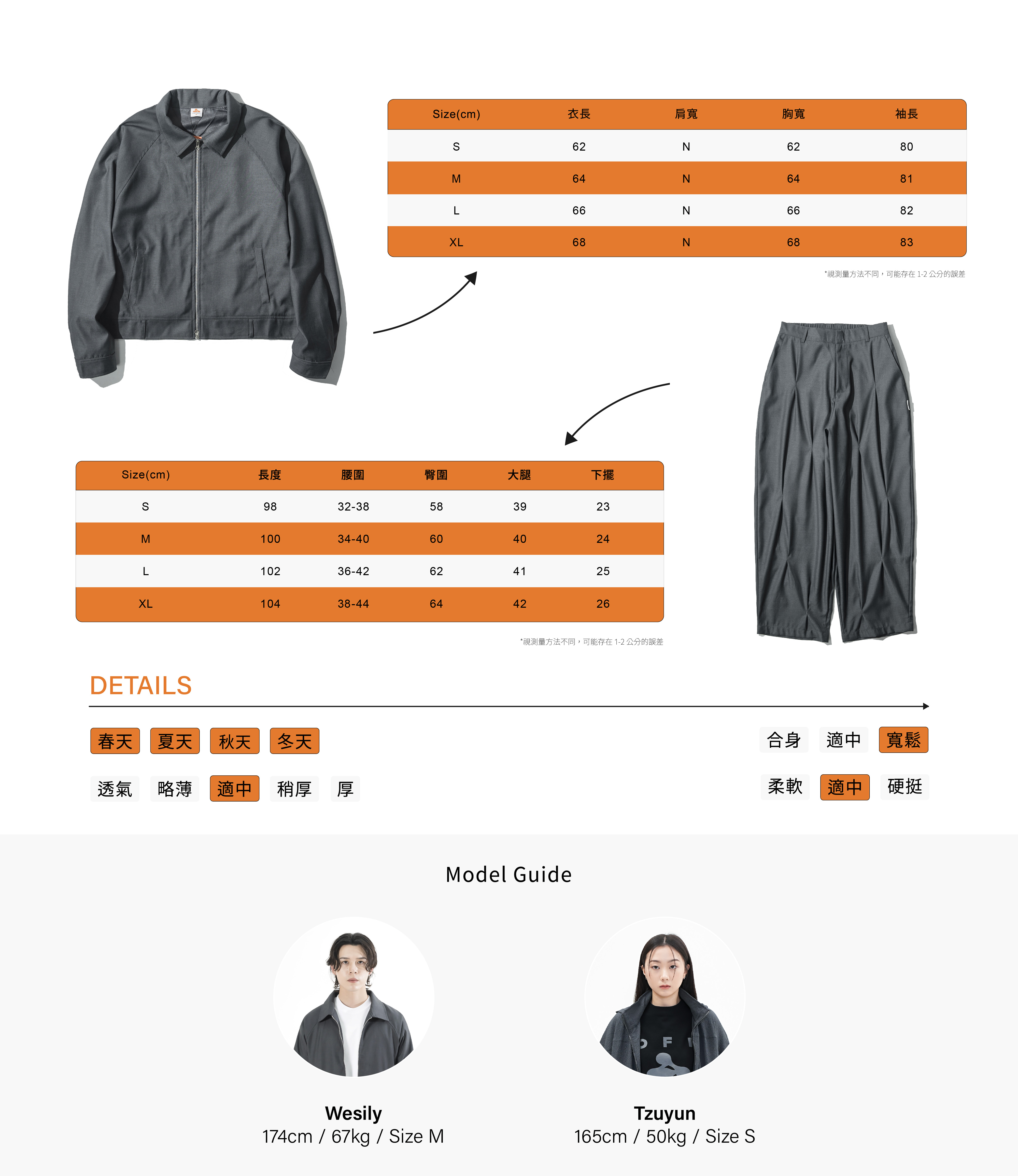 - 褲型屬於立體錐形,呈現視覺寬鬆效果