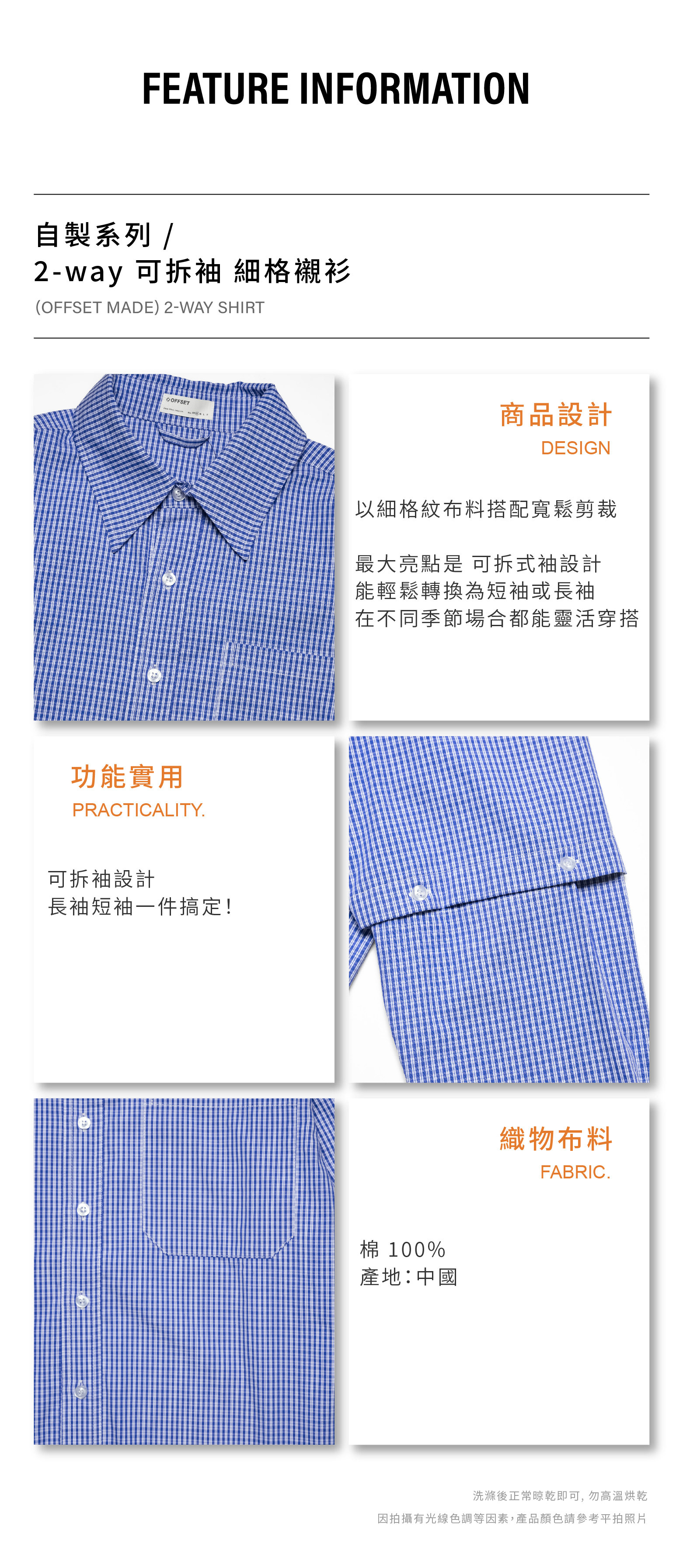 OFFSET MADE 2-WAY 可拆袖 細格襯衫 [MT054]
