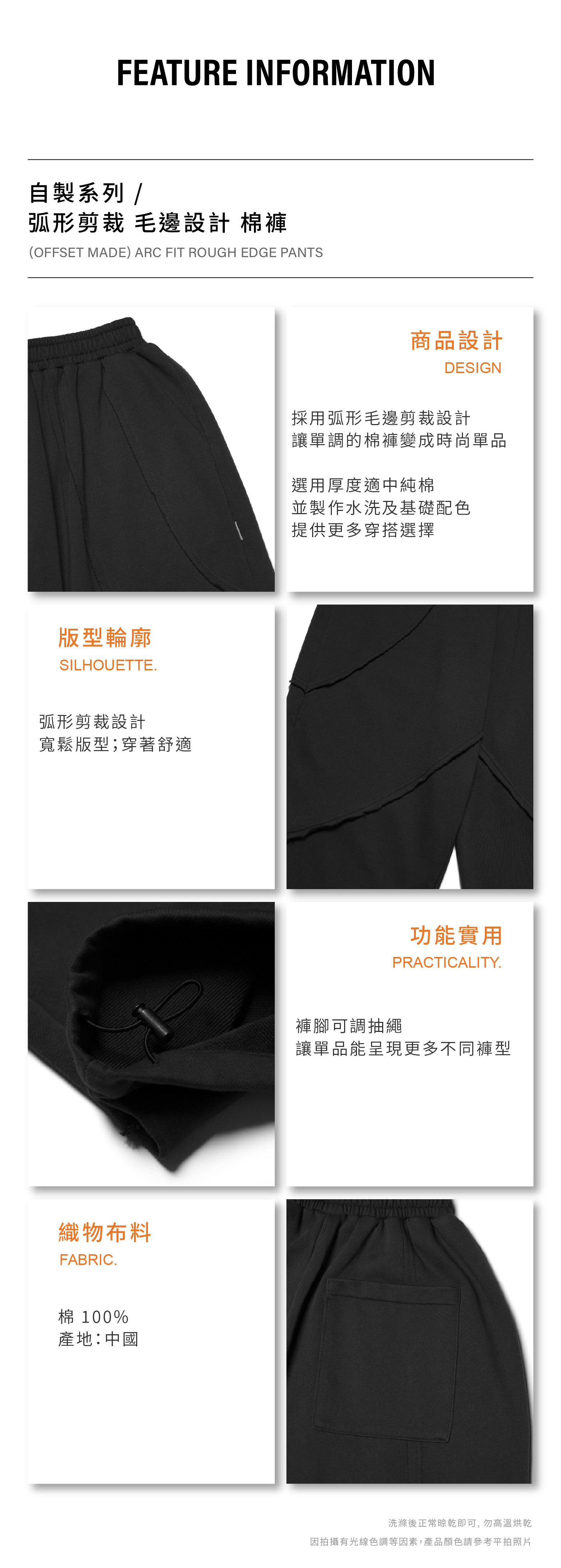 OFFSET MADE 弧形剪裁 毛邊設計 棉褲 [MB015]
