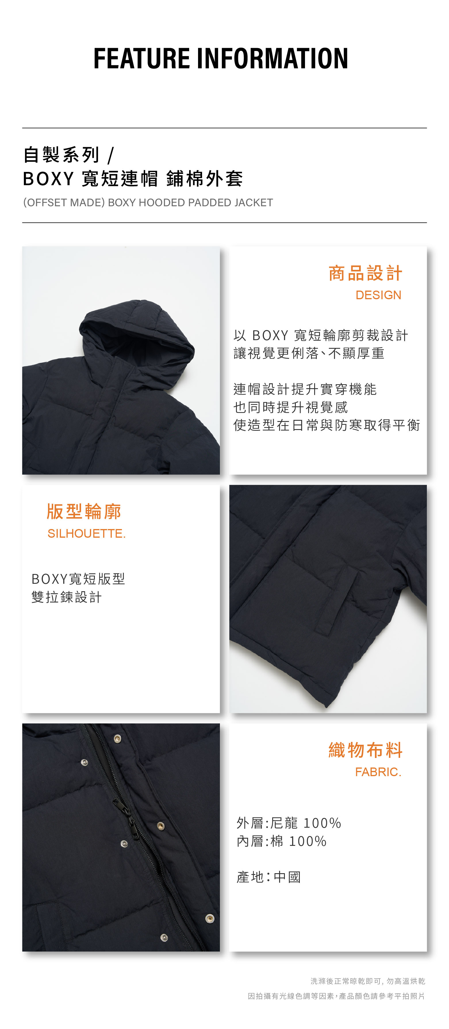 OFFSET MADE BOXY 寬短連帽 鋪棉外套 [MJ044]
