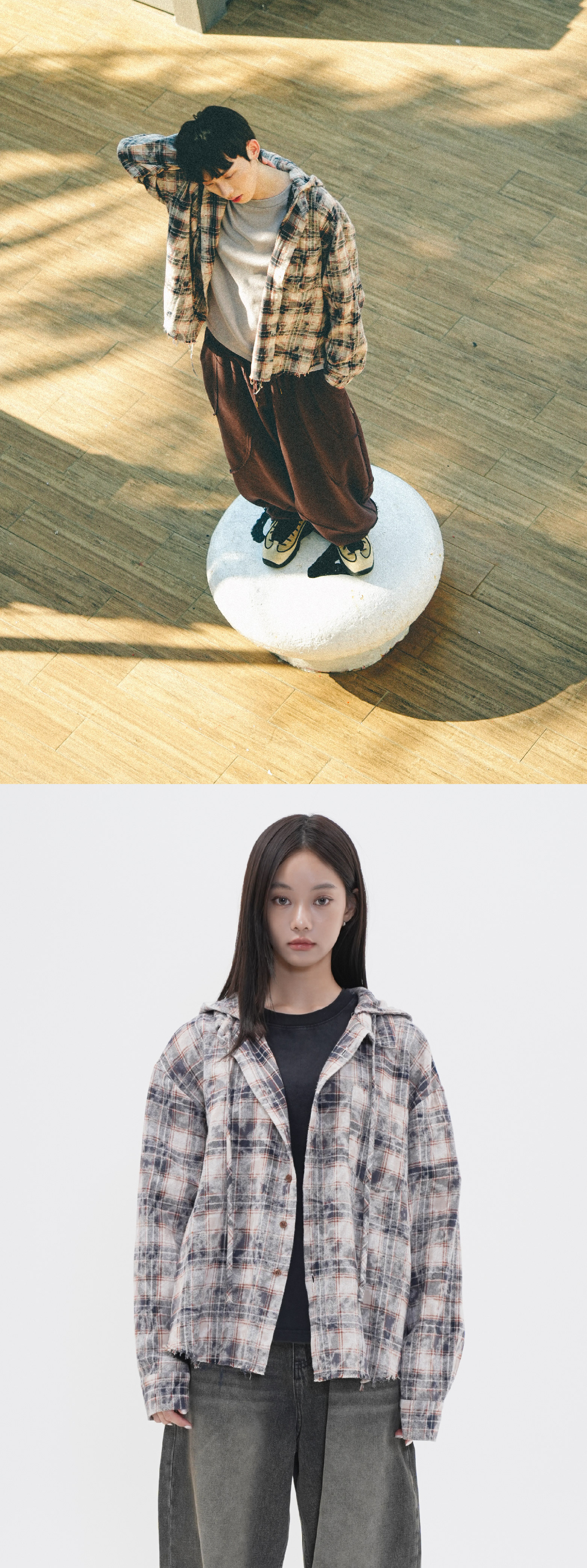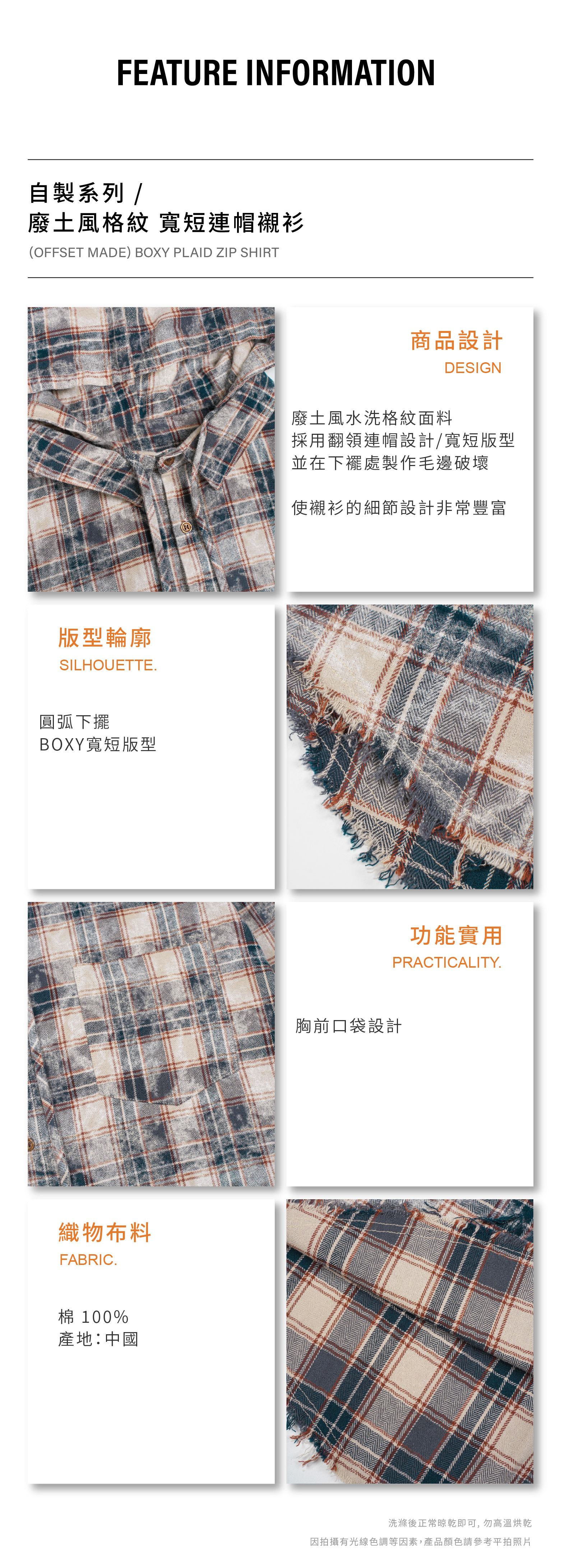 OFFSET MADE 廢土風格紋 寬短連帽襯衫 [MT042]