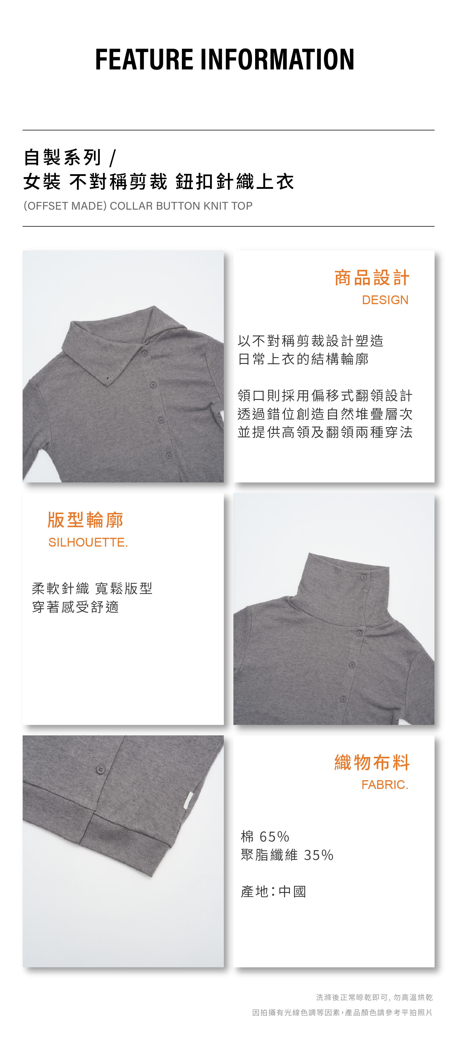 OFFSET MADE 女裝 不對稱剪裁 鈕扣針織上衣 [WT027]