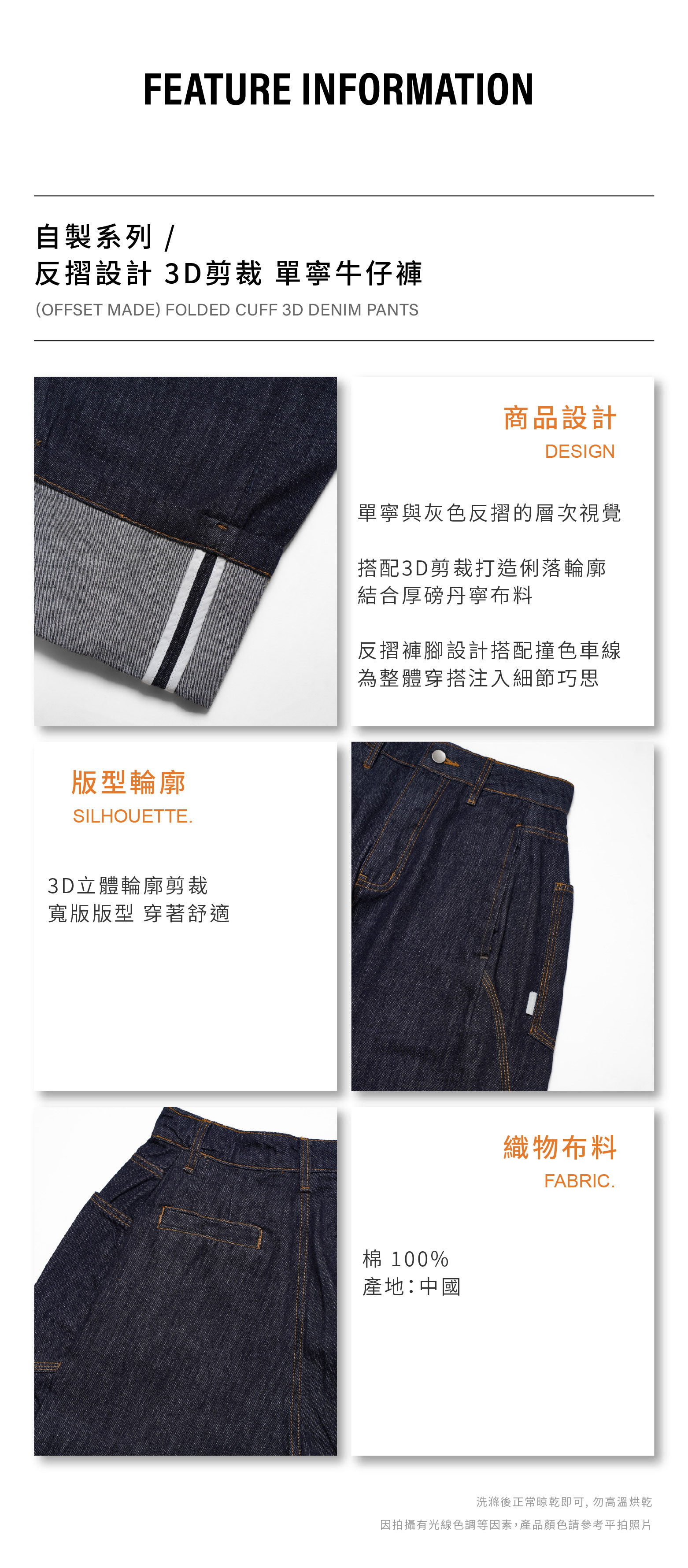 OFFSET MADE 反摺設計 3D剪裁 單寧牛仔褲 [MB036]