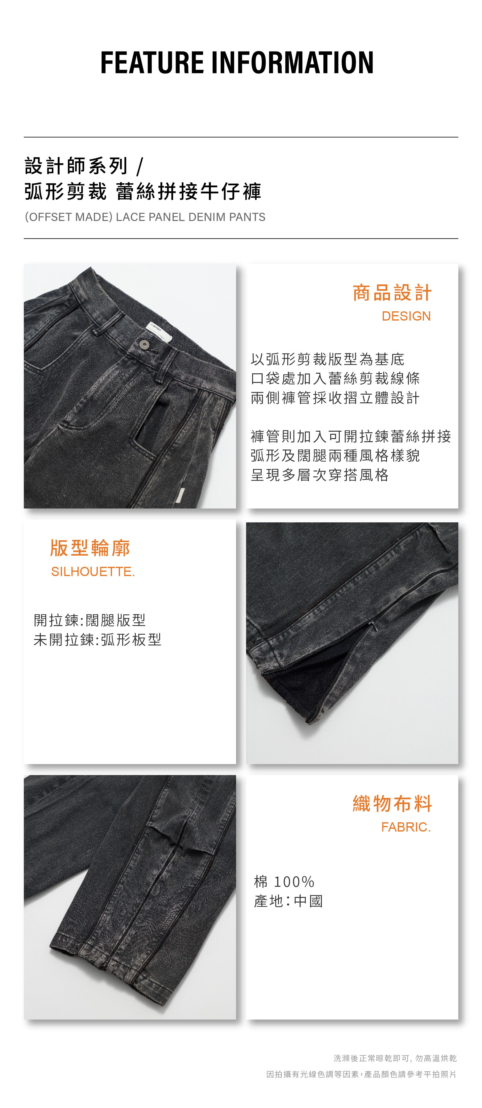 設計師系列 弧形剪裁 蕾絲拼接牛仔褲 [MB051]