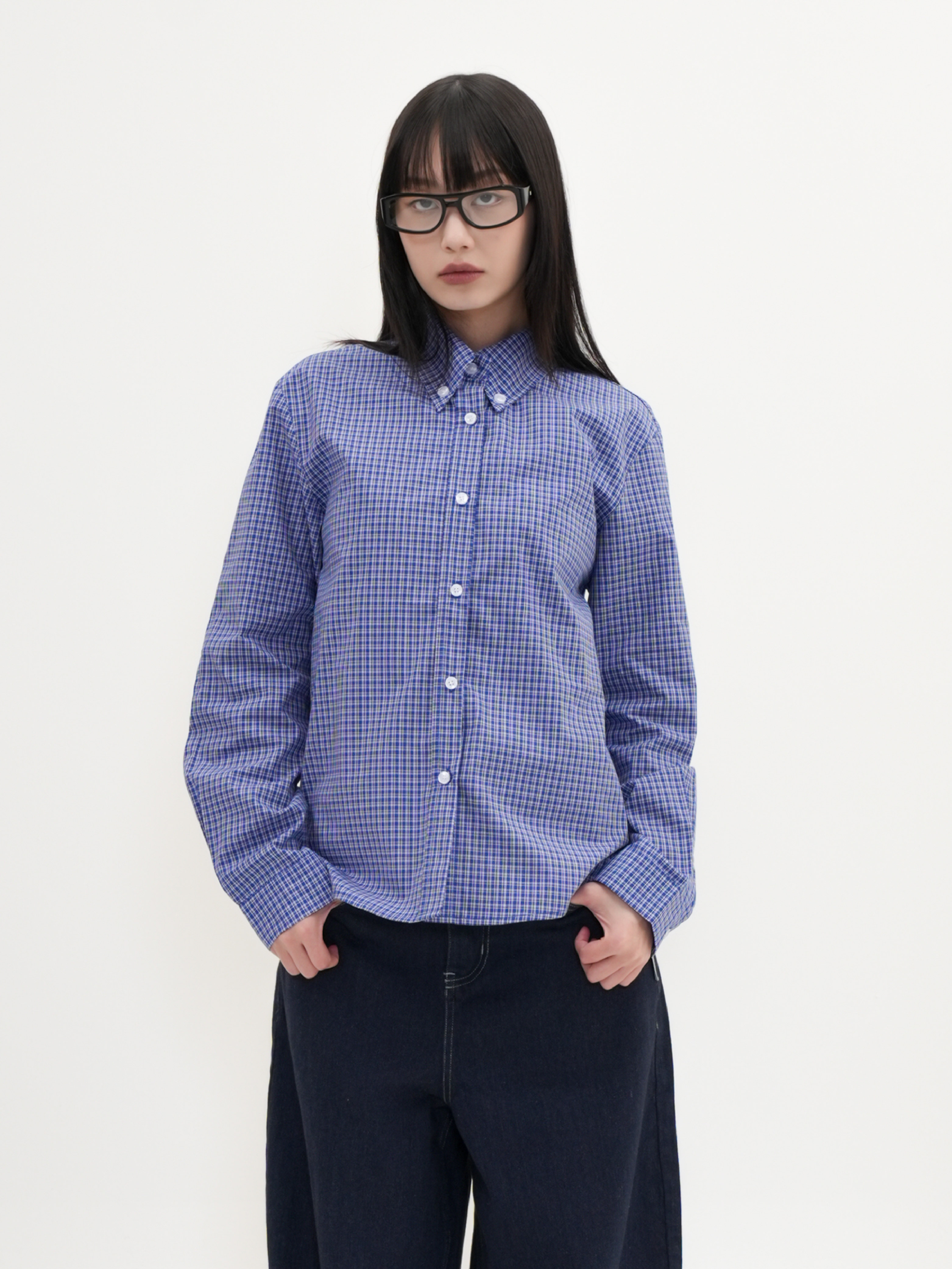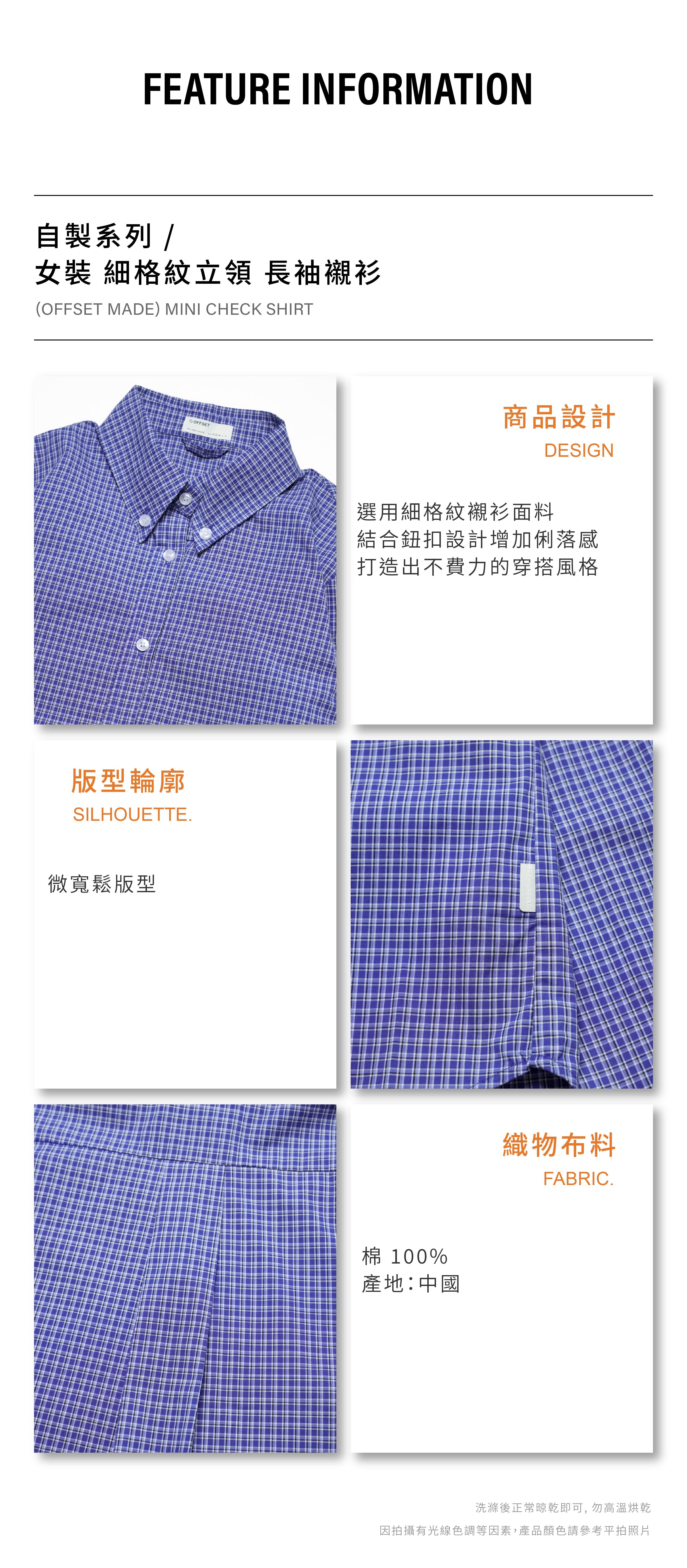 OFFSET MADE 女裝 細格紋立領 長袖襯衫 [WT015]