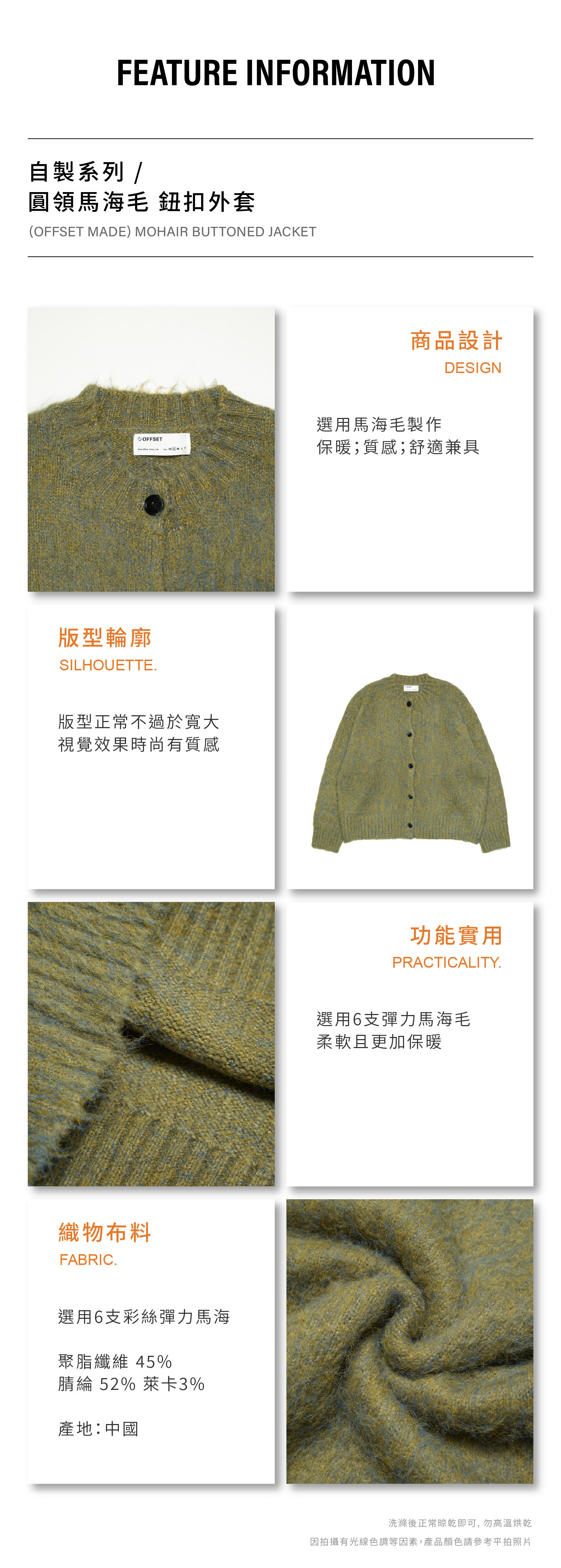 OFFSET MADE 圓領馬海毛 鈕扣外套 [MJ011]