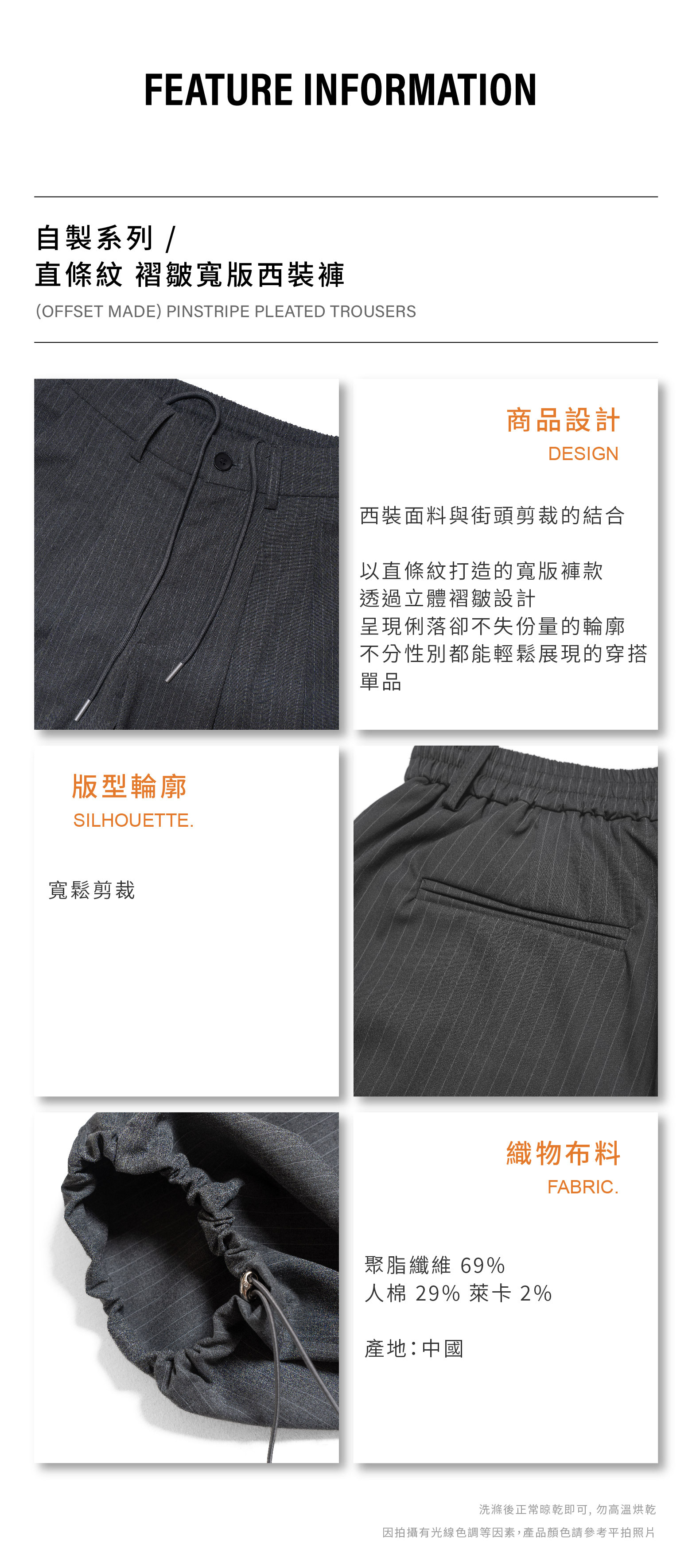 OFFSET MADE 直條紋 褶皺寬版西裝褲 [MB050]