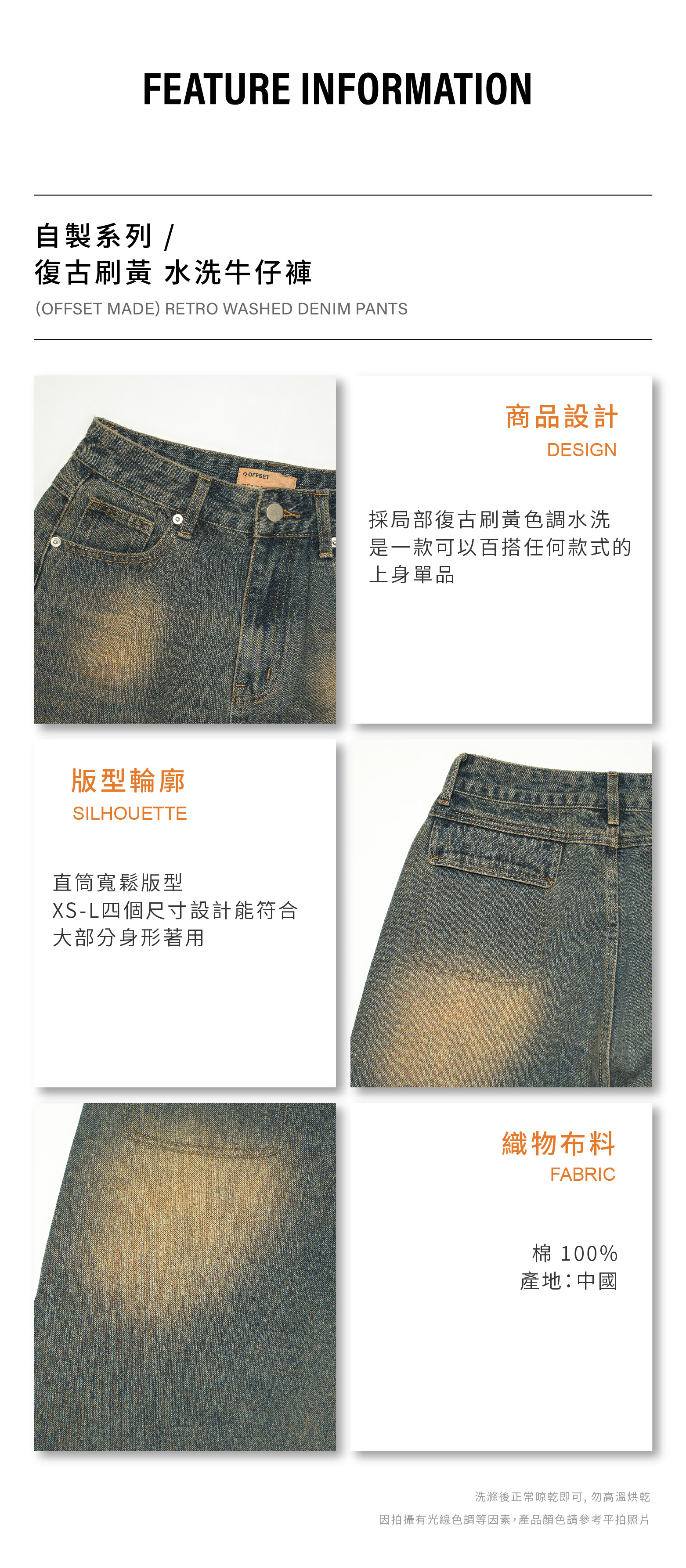 OFFSET MADE 復古刷黃 水洗牛仔褲 [MB013]
