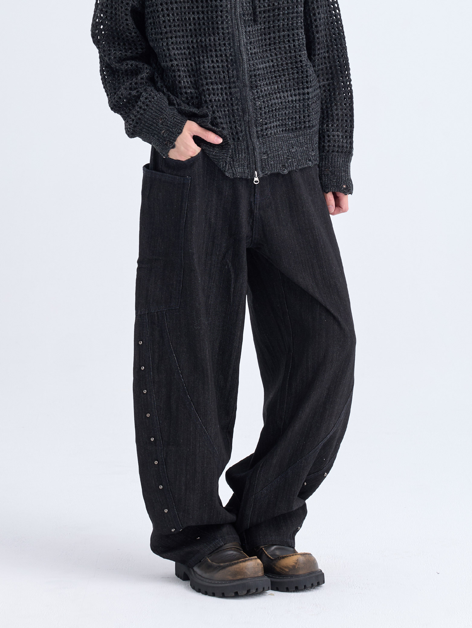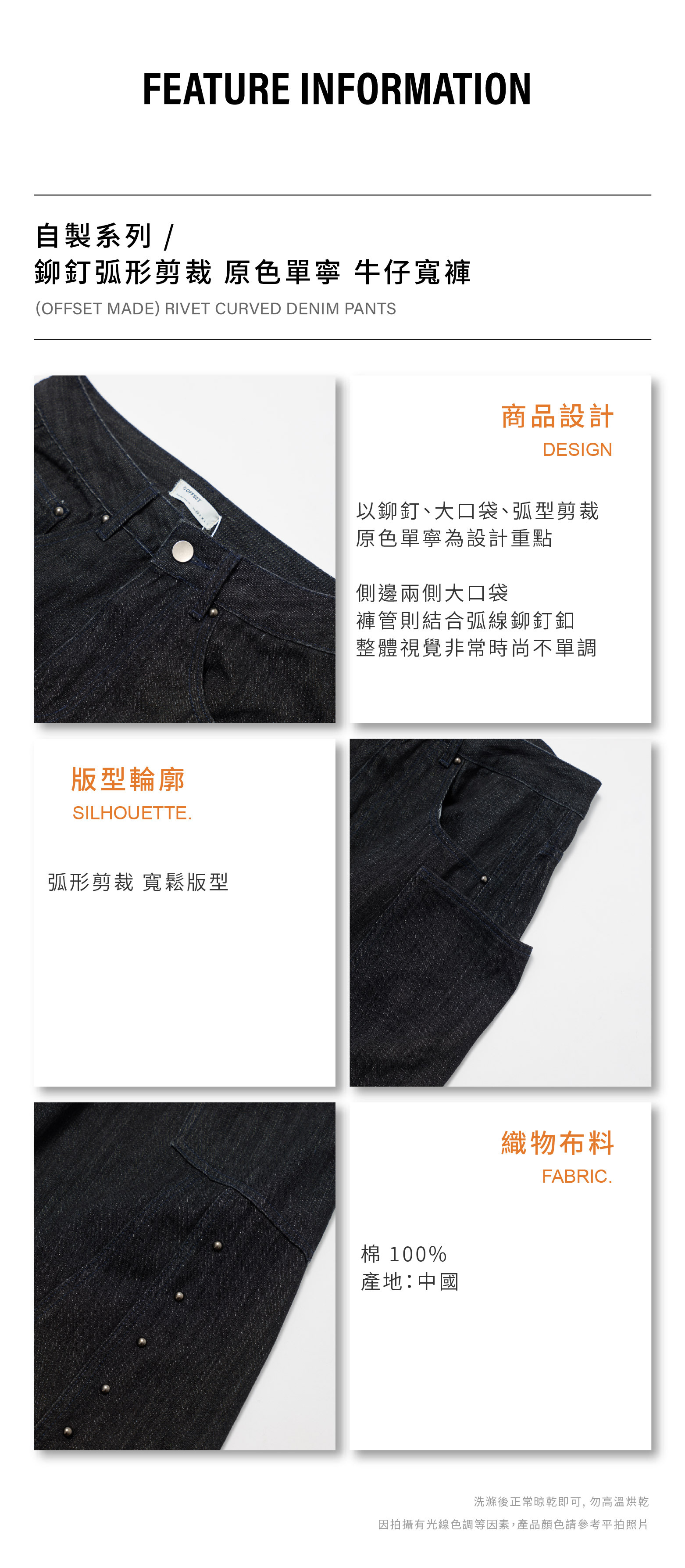OFFSET MADE 鉚釘弧形剪裁 原色單寧 牛仔寬褲 [MB053]
