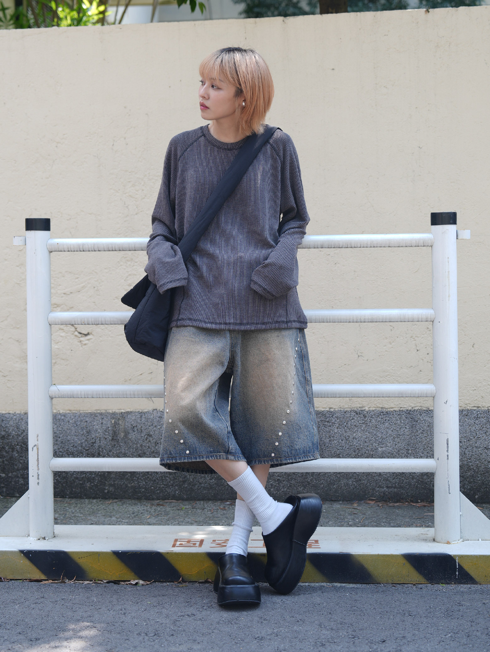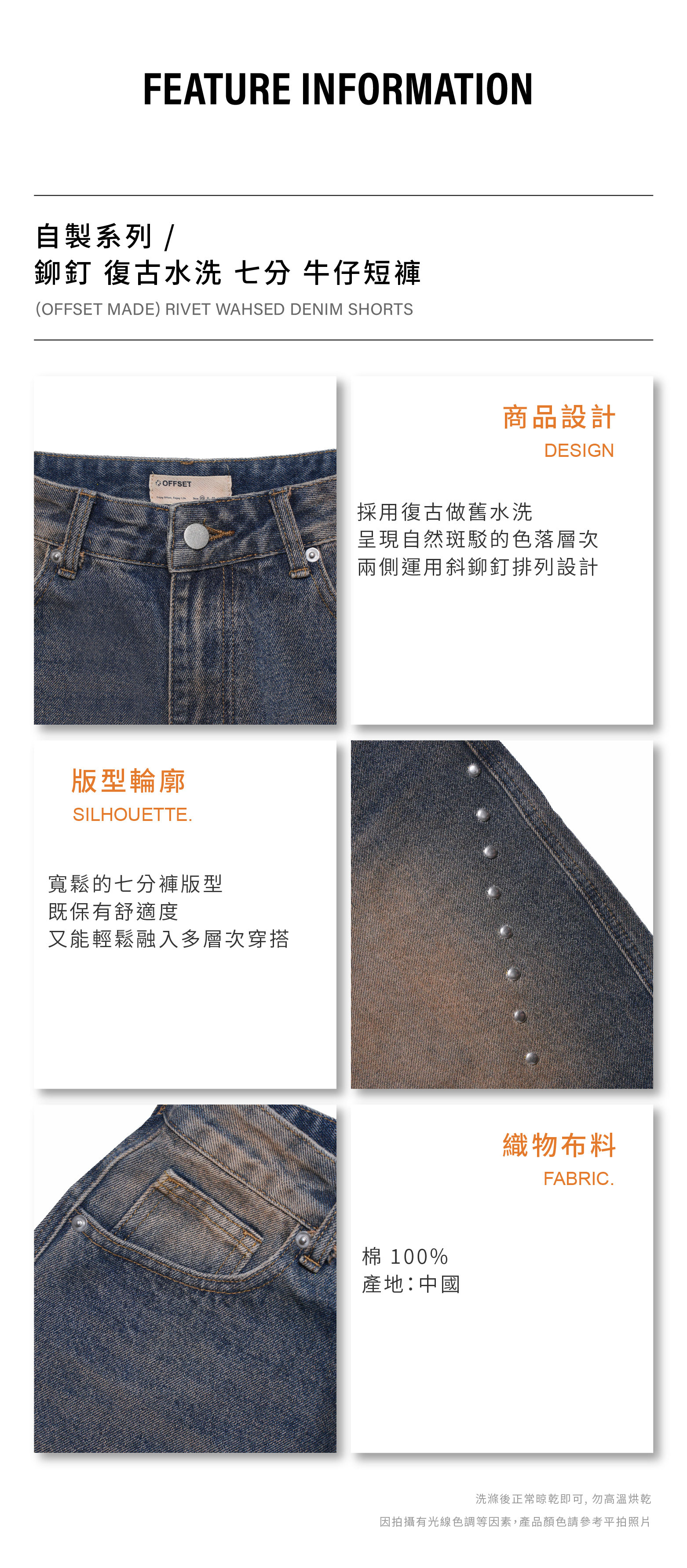 OFFSET MADE 鉚釘 復古水洗 七分 牛仔短褲 [MB049]