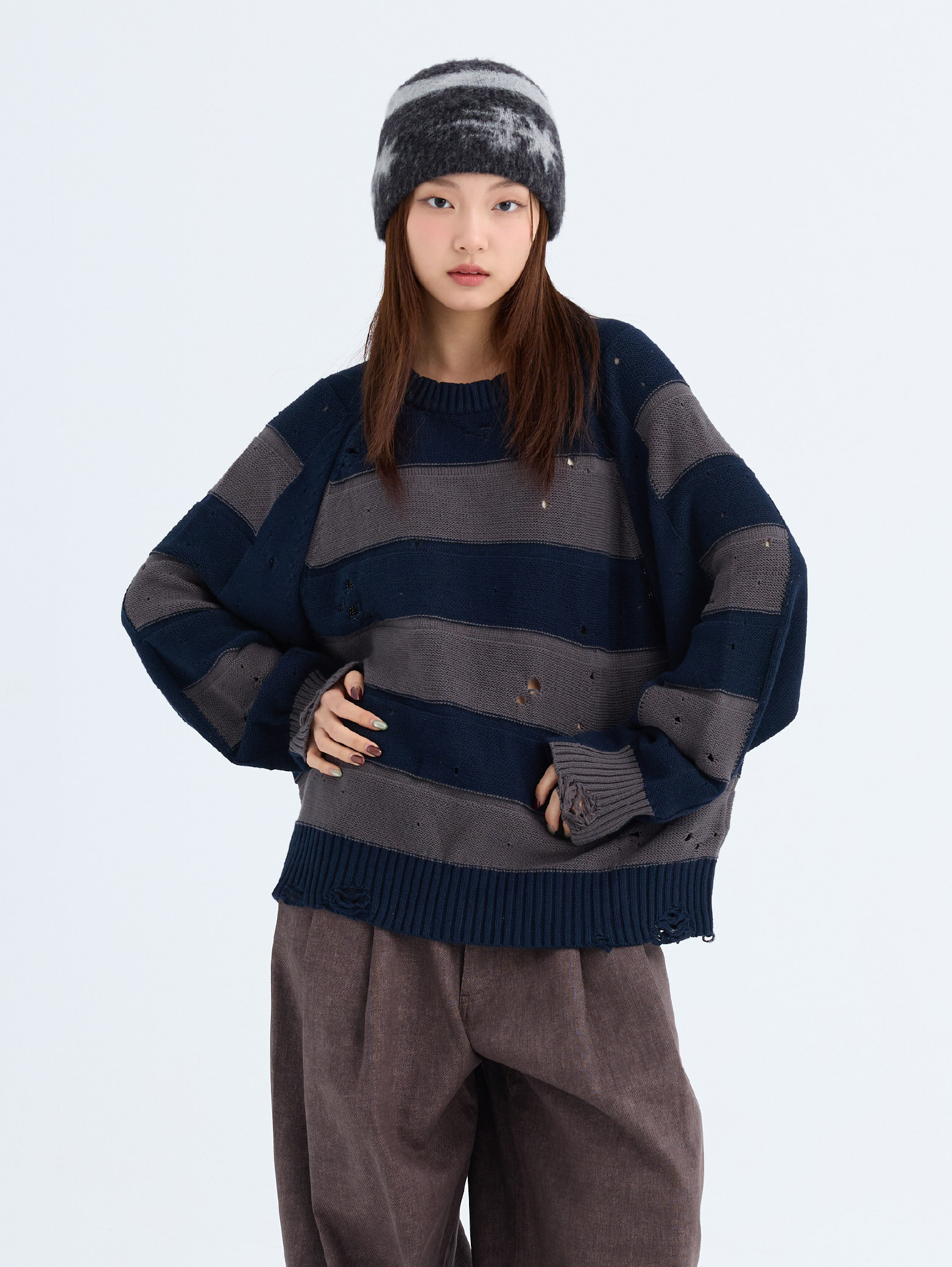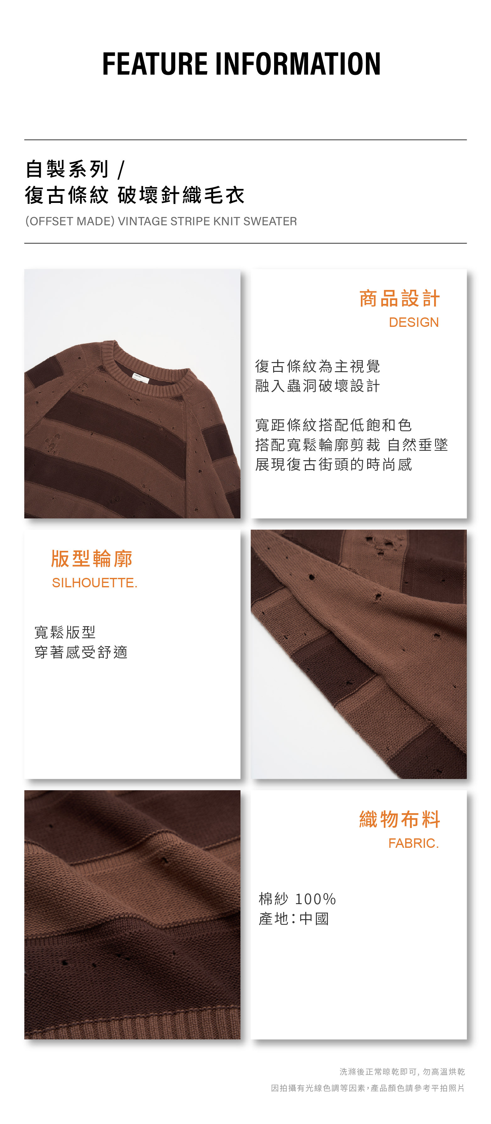 OFFSET MADE 復古條紋 破壞針織毛衣 [MT078]