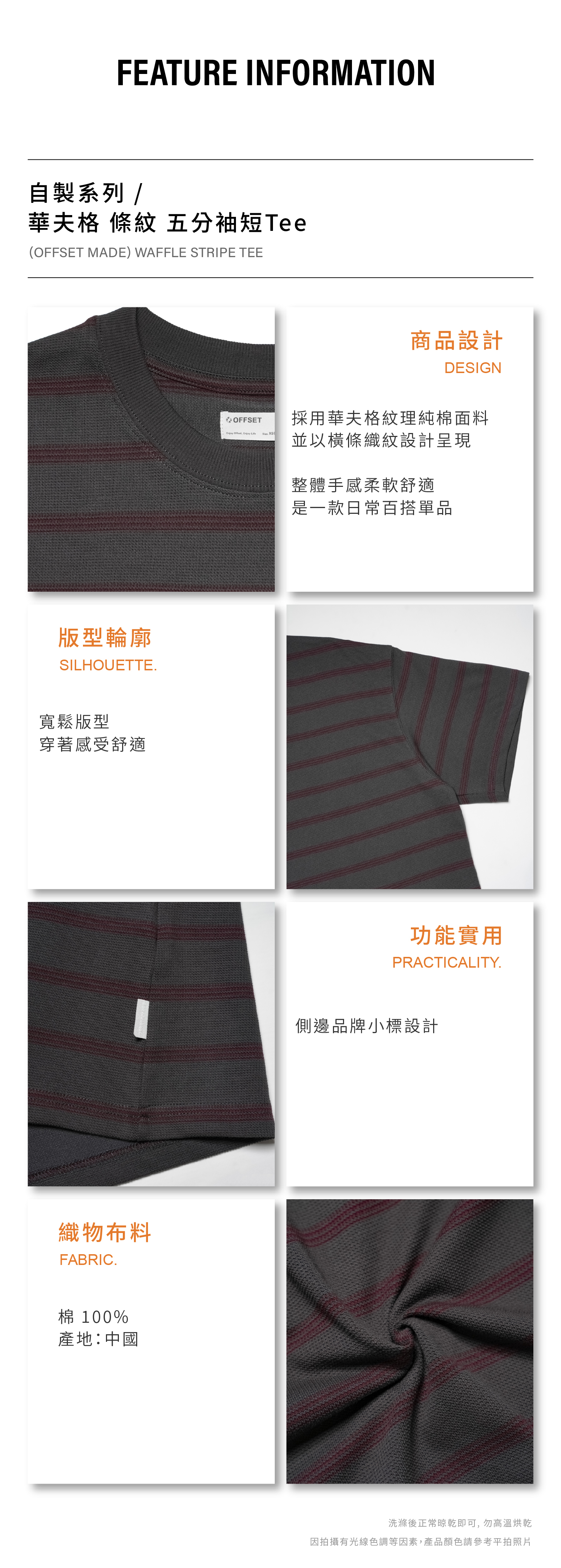 OFFSET MADE 華夫格 條紋 五分袖短Tee [MT032]