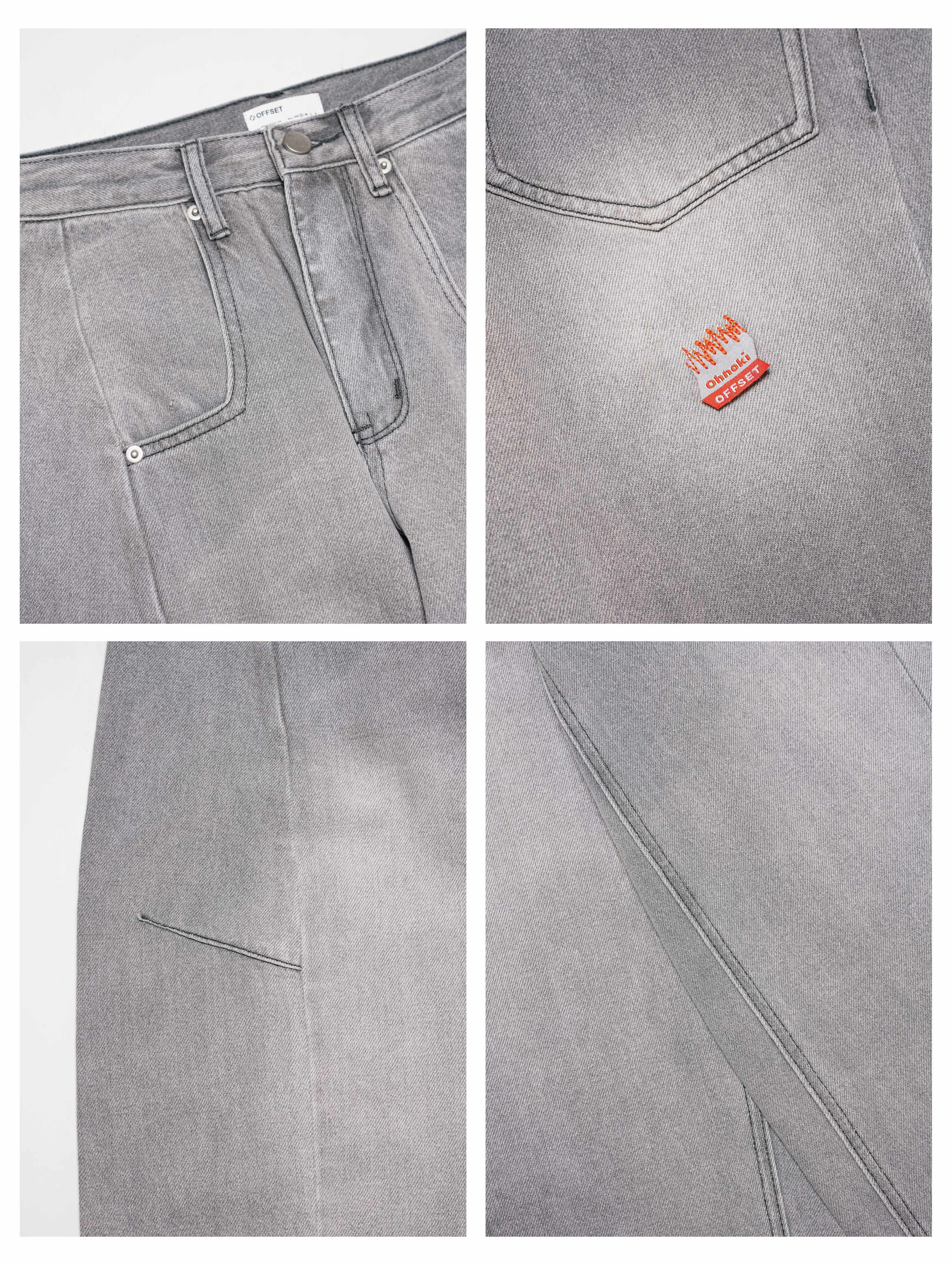 OHNOKI 跨界聯名 / 織標系列 弧形剪裁 收摺牛仔寬褲
