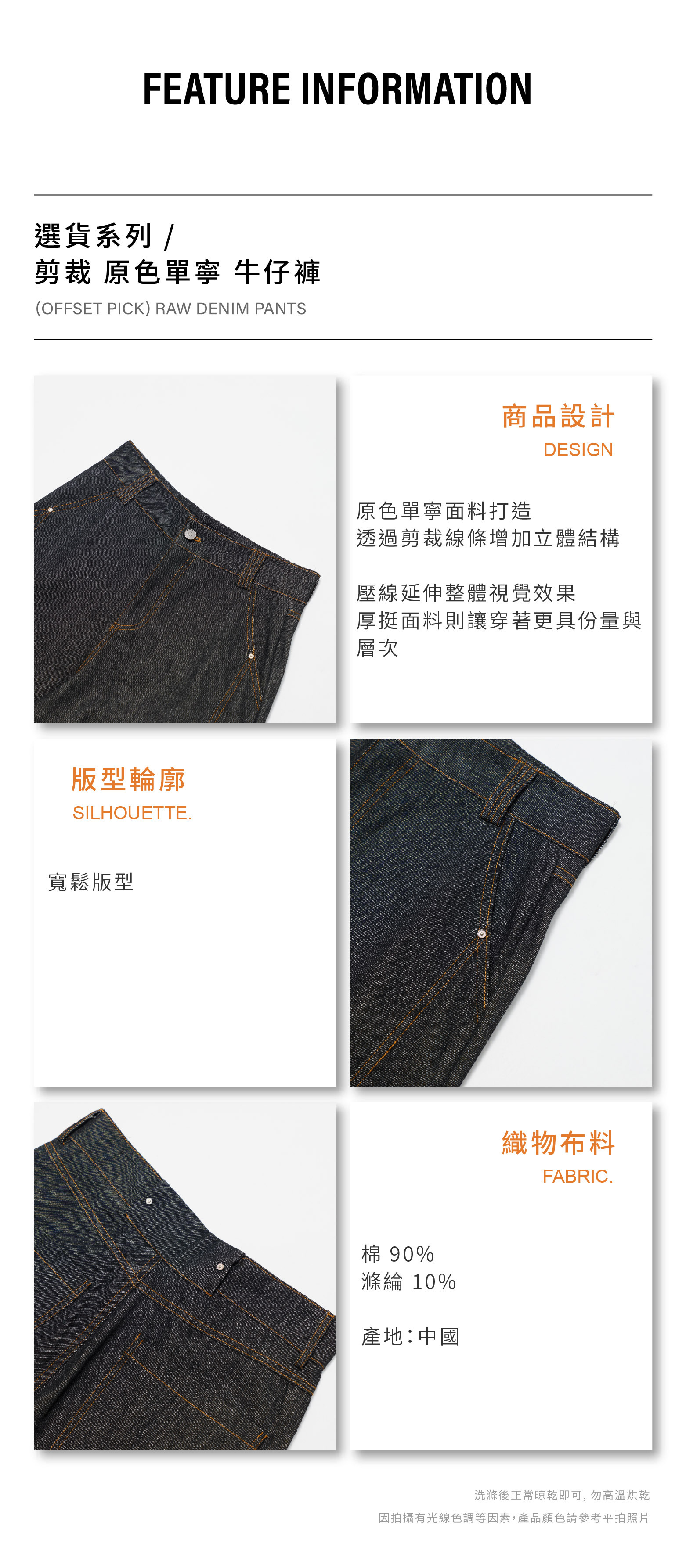 剪裁 原色單寧 牛仔褲 [PB065]