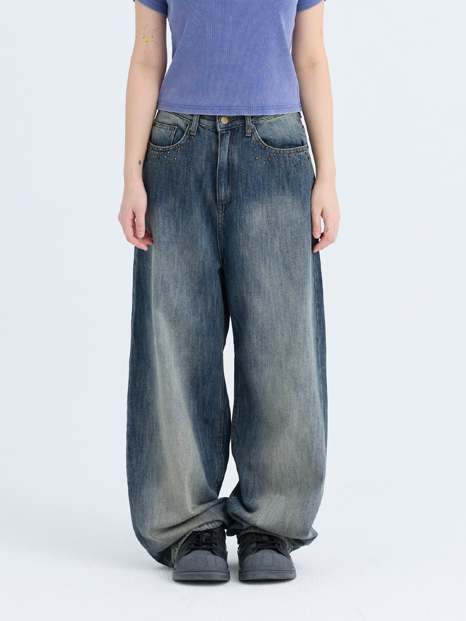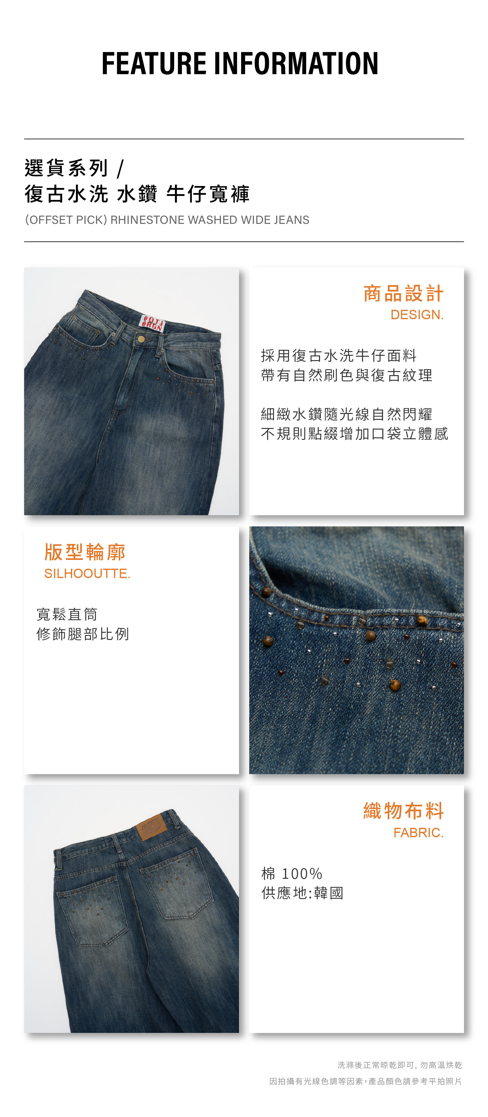 復古水洗 水鑽 牛仔寬褲 [PB087]