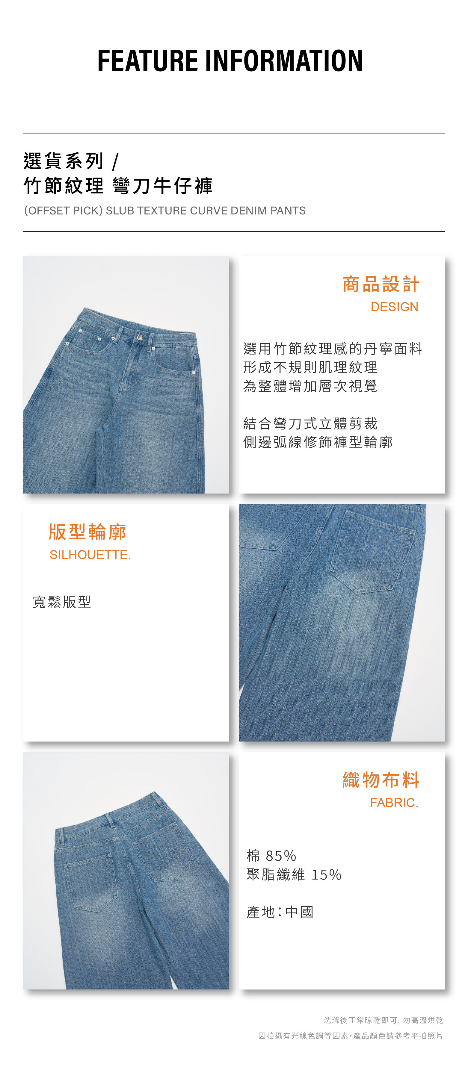 竹節紋理 彎刀牛仔褲 [PB077]