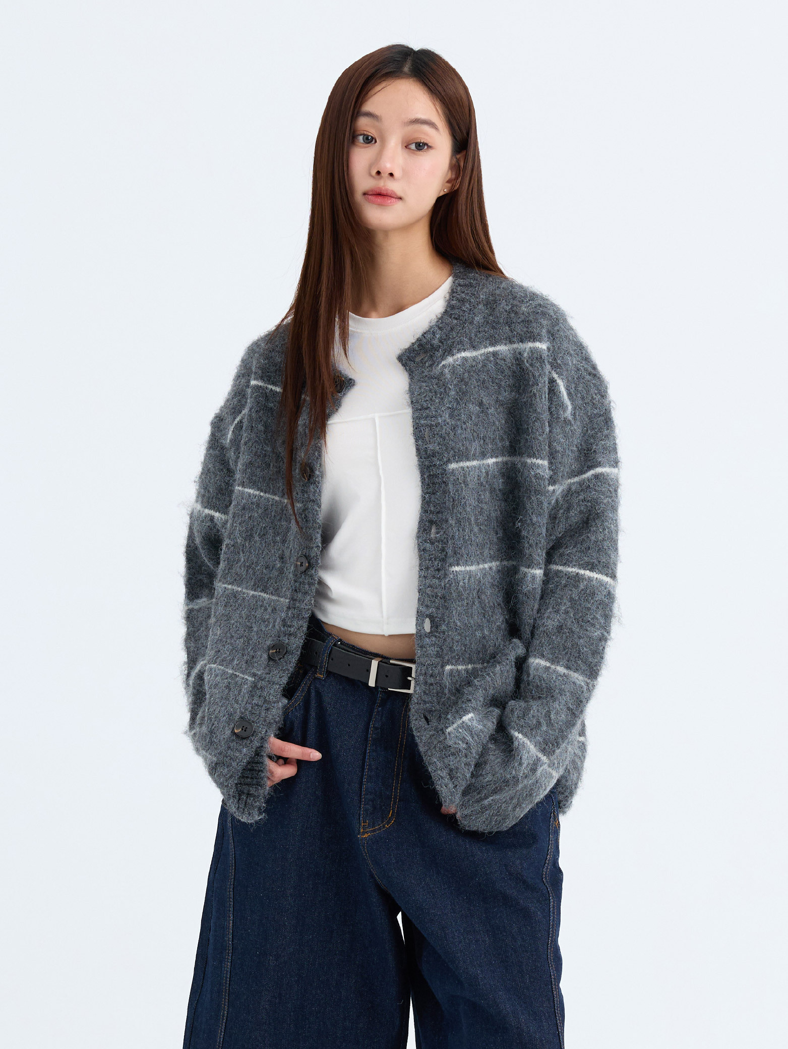 柔霧條紋針織 開襟外套 [PJ029]