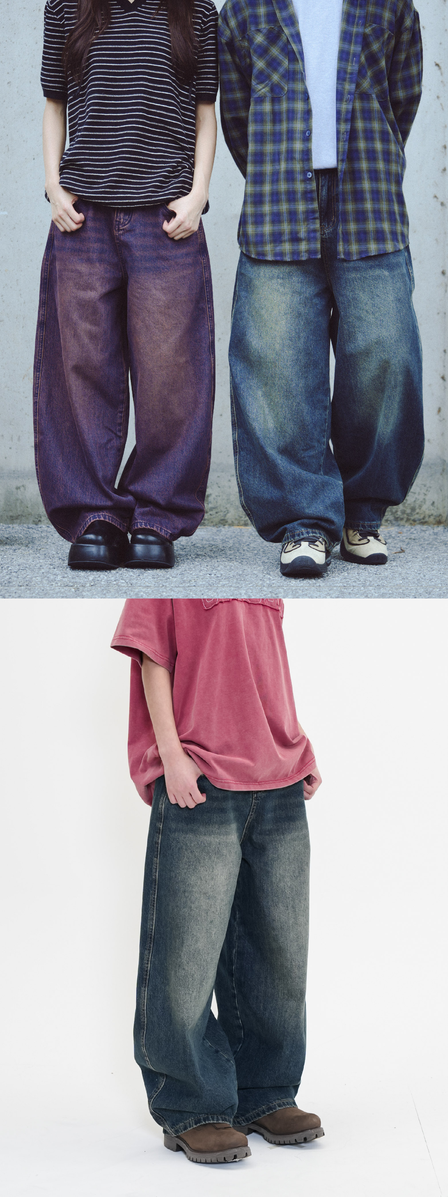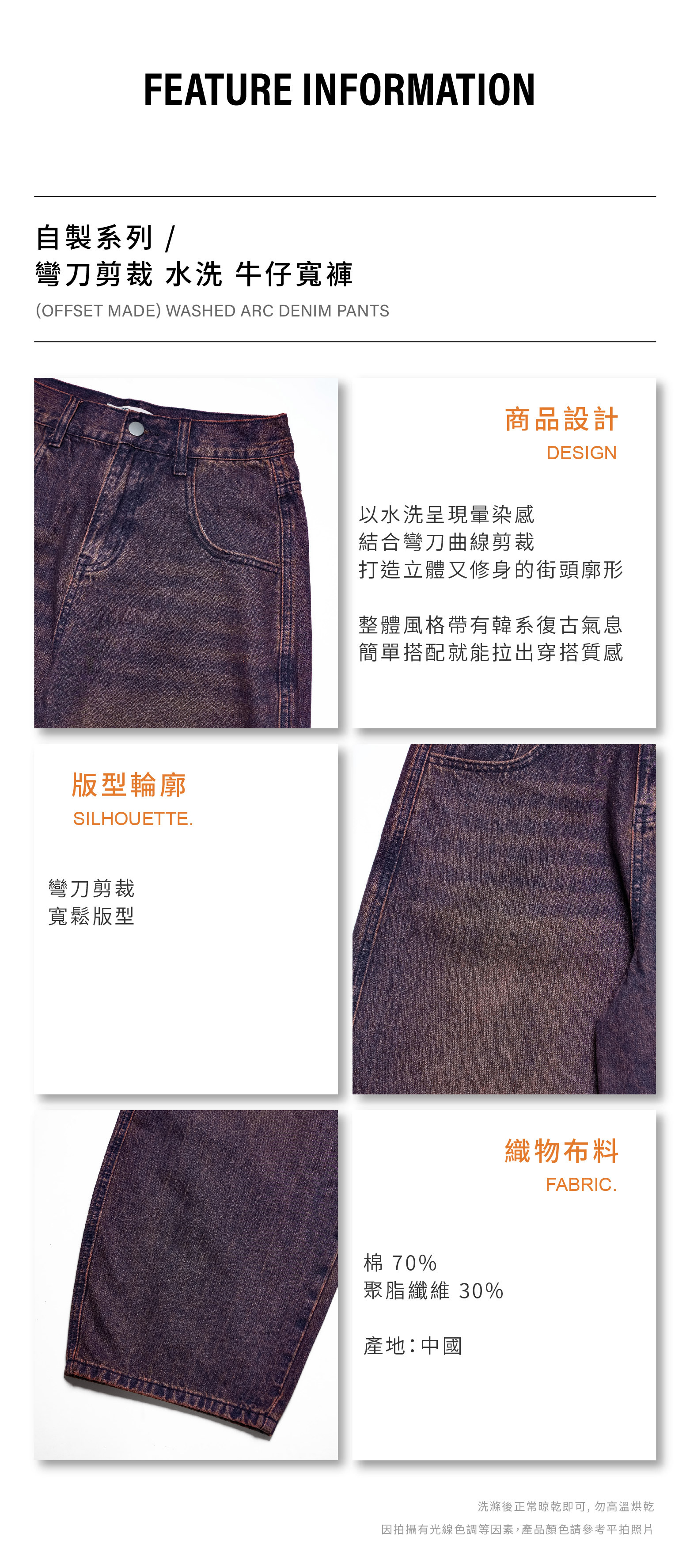 OFFSET MADE 彎刀剪裁 水洗 牛仔寬褲 [MB031]