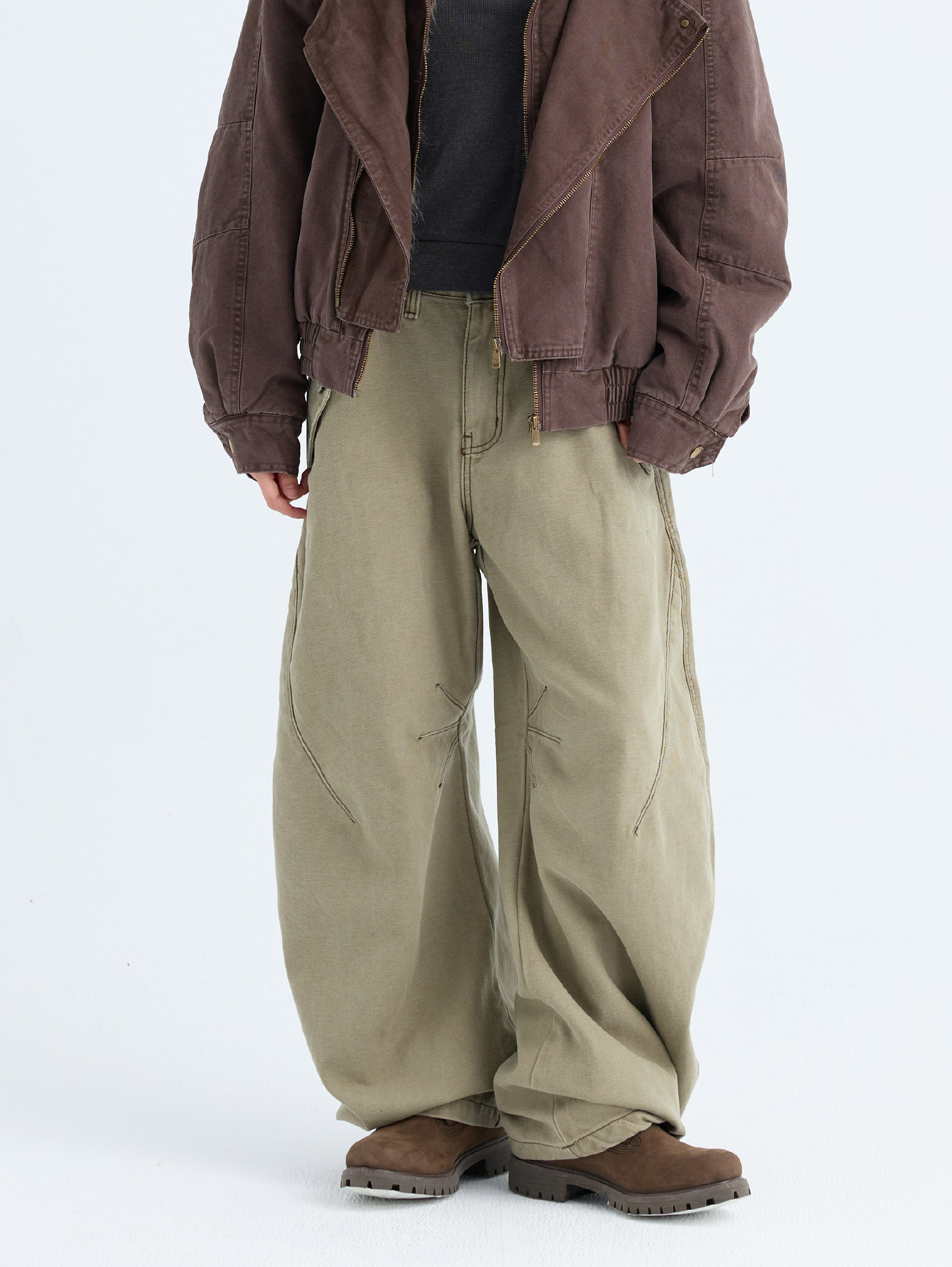 水洗做舊 剪裁彎刀褲 [PB076]