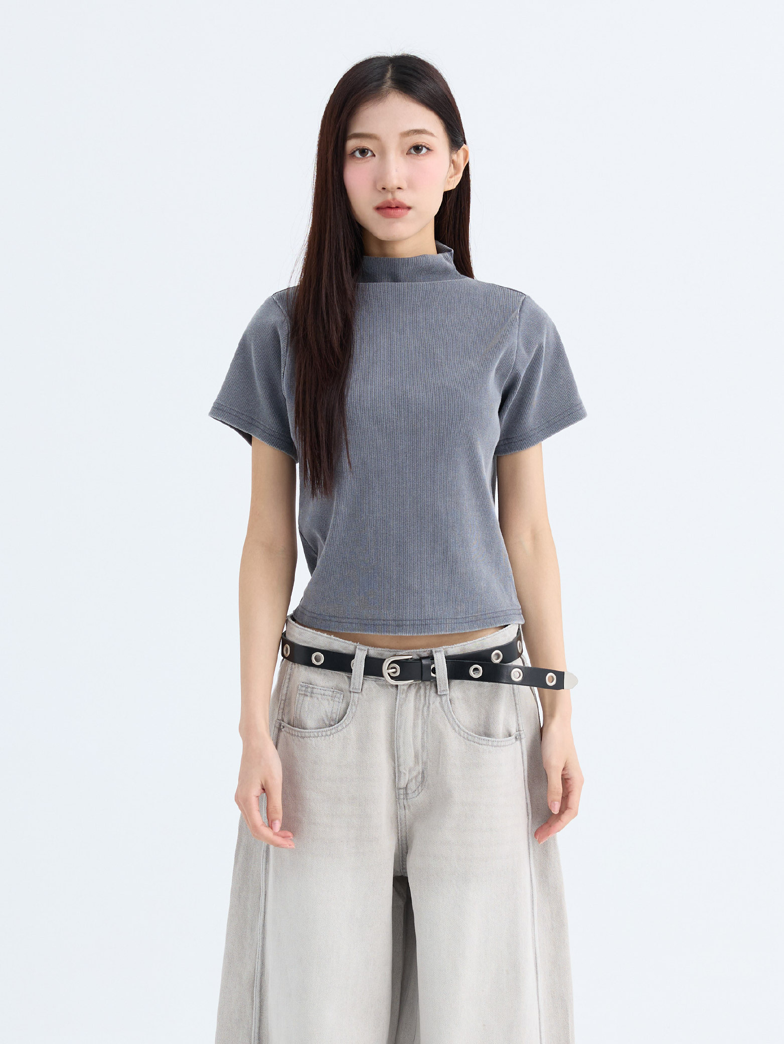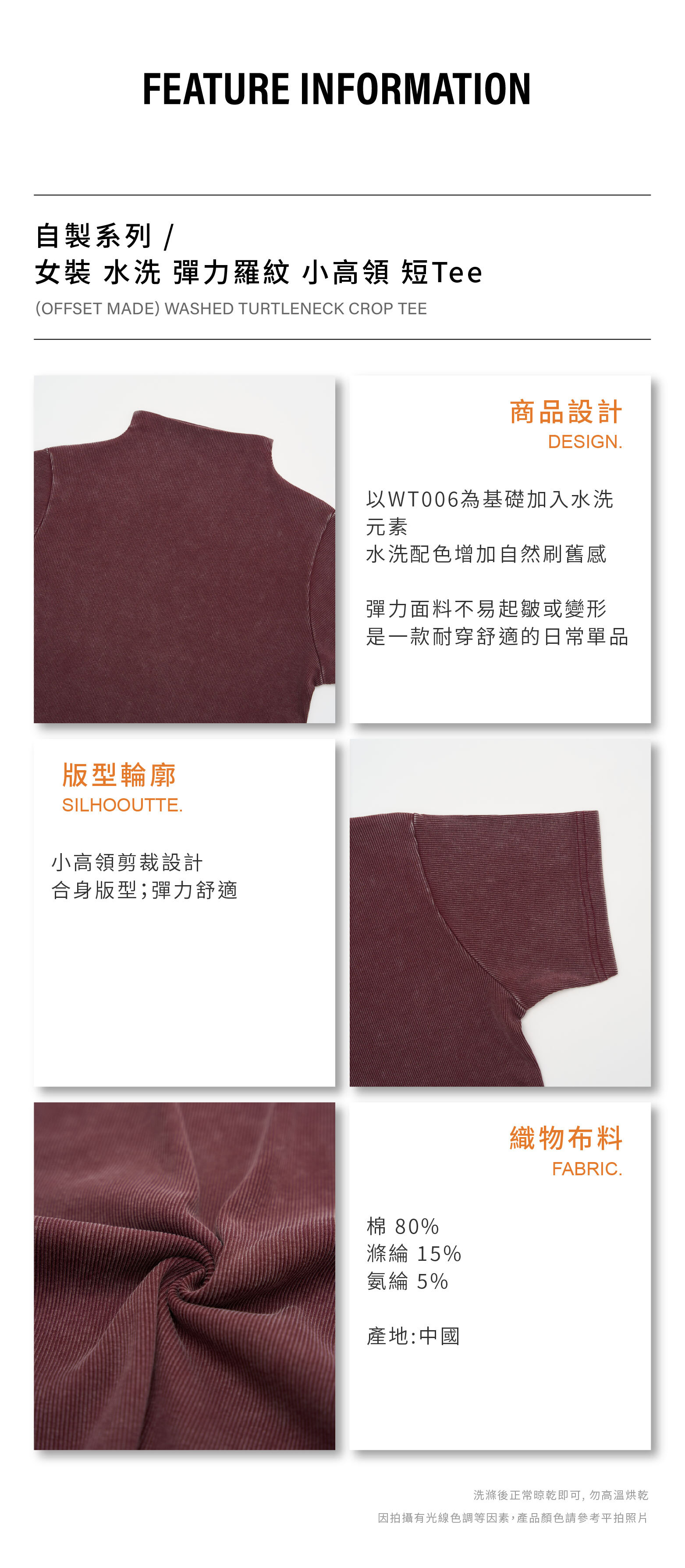 OFFSET MADE 女裝 水洗 彈力羅紋 小高領 短Tee [WT030]